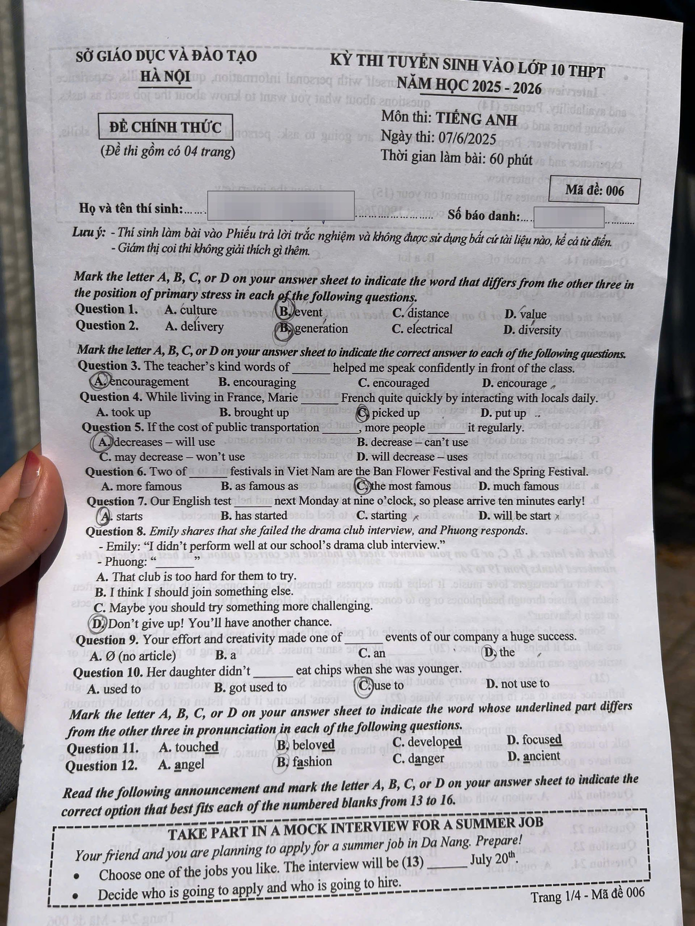 Mã đề 006: