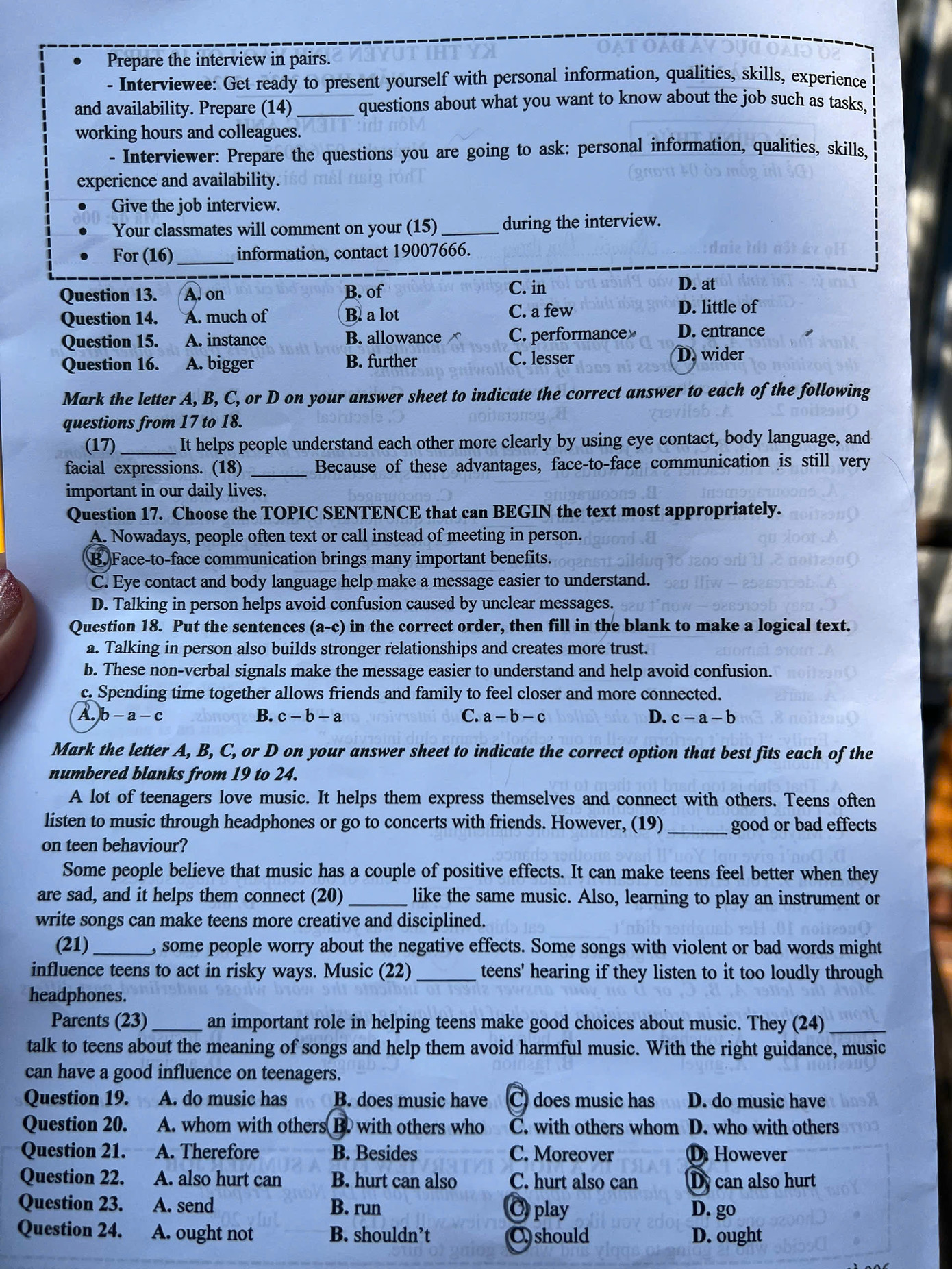 | 11. | 12. | 13.B | 14.A | 15.D | 16.A | 17. | 18. | 19.D | 20.C |
