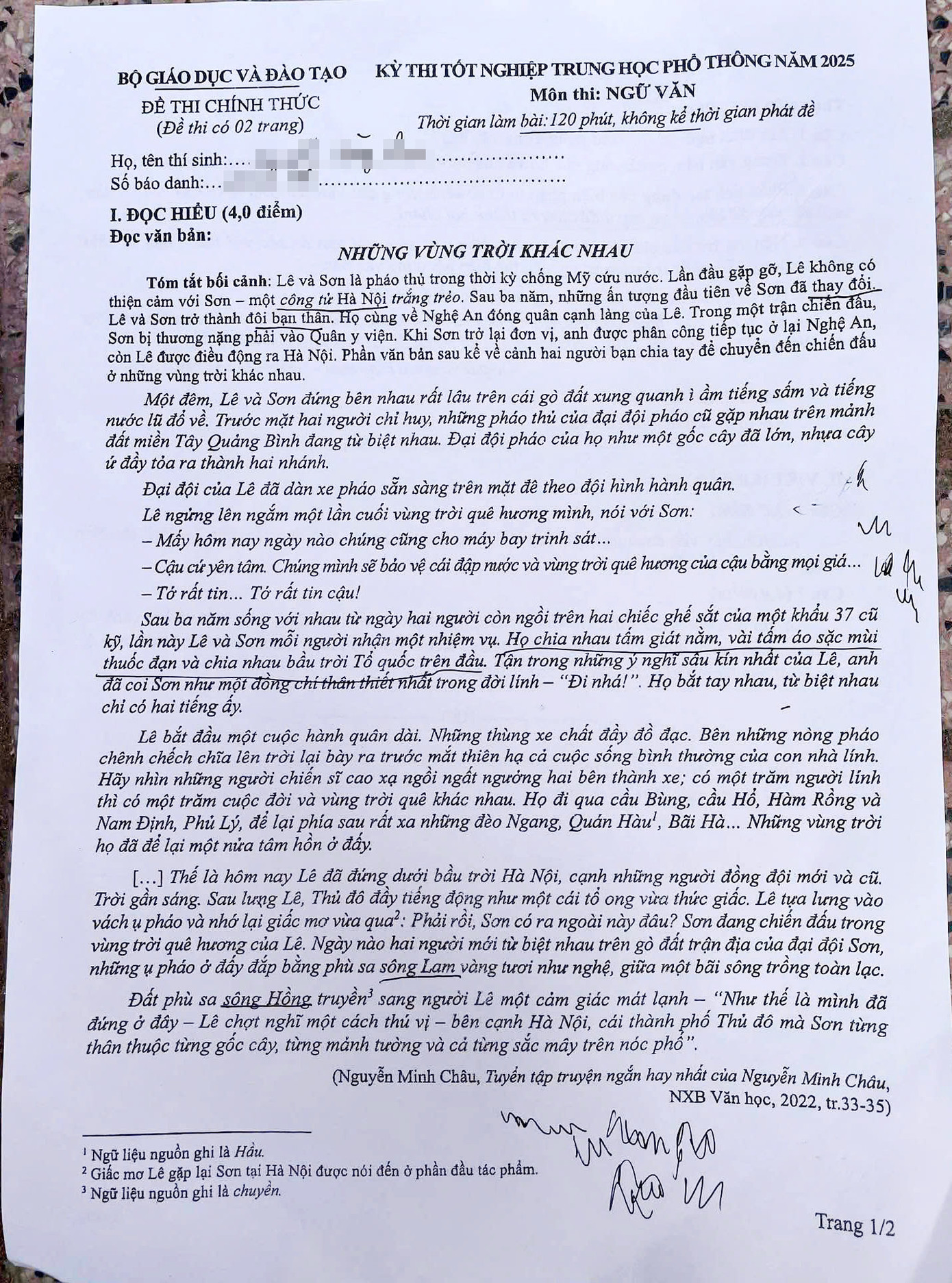TS Trịnh Thu Tuyết, giáo viên Trường THCS - THPT Lương Thế Vinh (Hà Nội) cho rằng, điểm khác biệt lớn nhất của đề thi Ngữ văn trong kì thi năm 2025 là ngữ liệu cho các câu hỏi phần Đọc hiểu và phần Viết đều không sử dụng văn bản trong cả 3 bộ sách giáo khoa hiện hành.