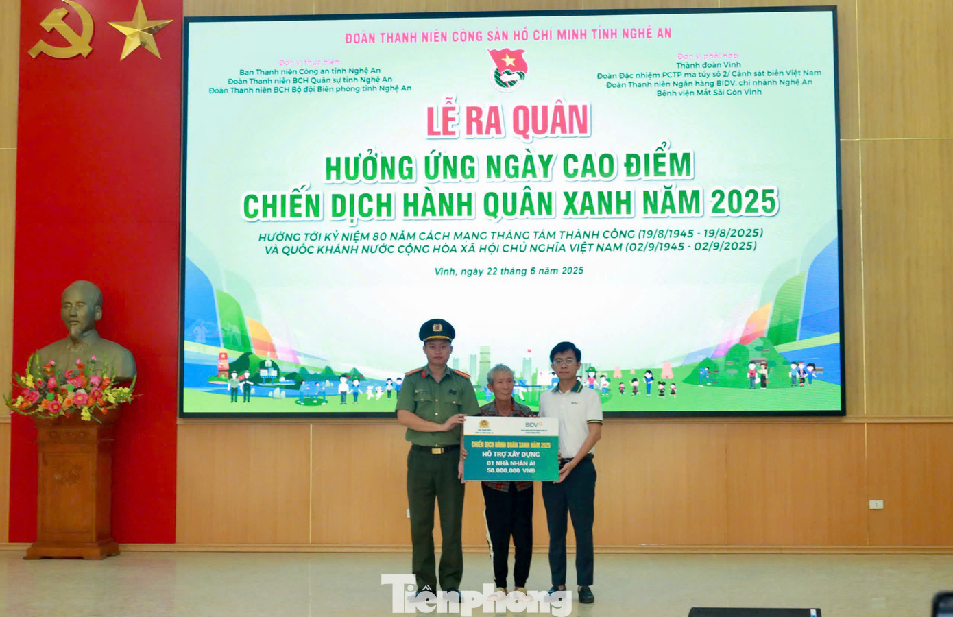 | Chiến dịch “Hành quân xanh” là một trong những hoạt động trọng điểm của Chiến dịch Thanh niên tình nguyện Hè do Tỉnh Đoàn Nghệ An phát động với sự tham gia của tuổi trẻ các lực lượng vũ trang trên địa bàn tỉnh. Đây là dịp để mỗi đoàn viên, thanh niên trong lực lượng vũ trang thể hiện tinh thần trách nhiệm, phát huy vai trò xung kích, sẵn sàng hành động vì cộng đồng, vì Tổ quốc. Trong ảnh, đại diện các đơn vị thăm, tặng quà cho gia đình cựu chiến binh có hoàn cảnh khó khăn sau chương trình ra quân cấp tỉnh. |