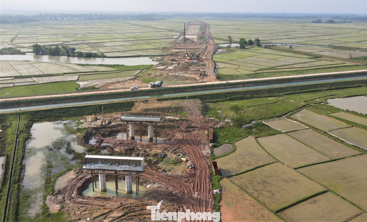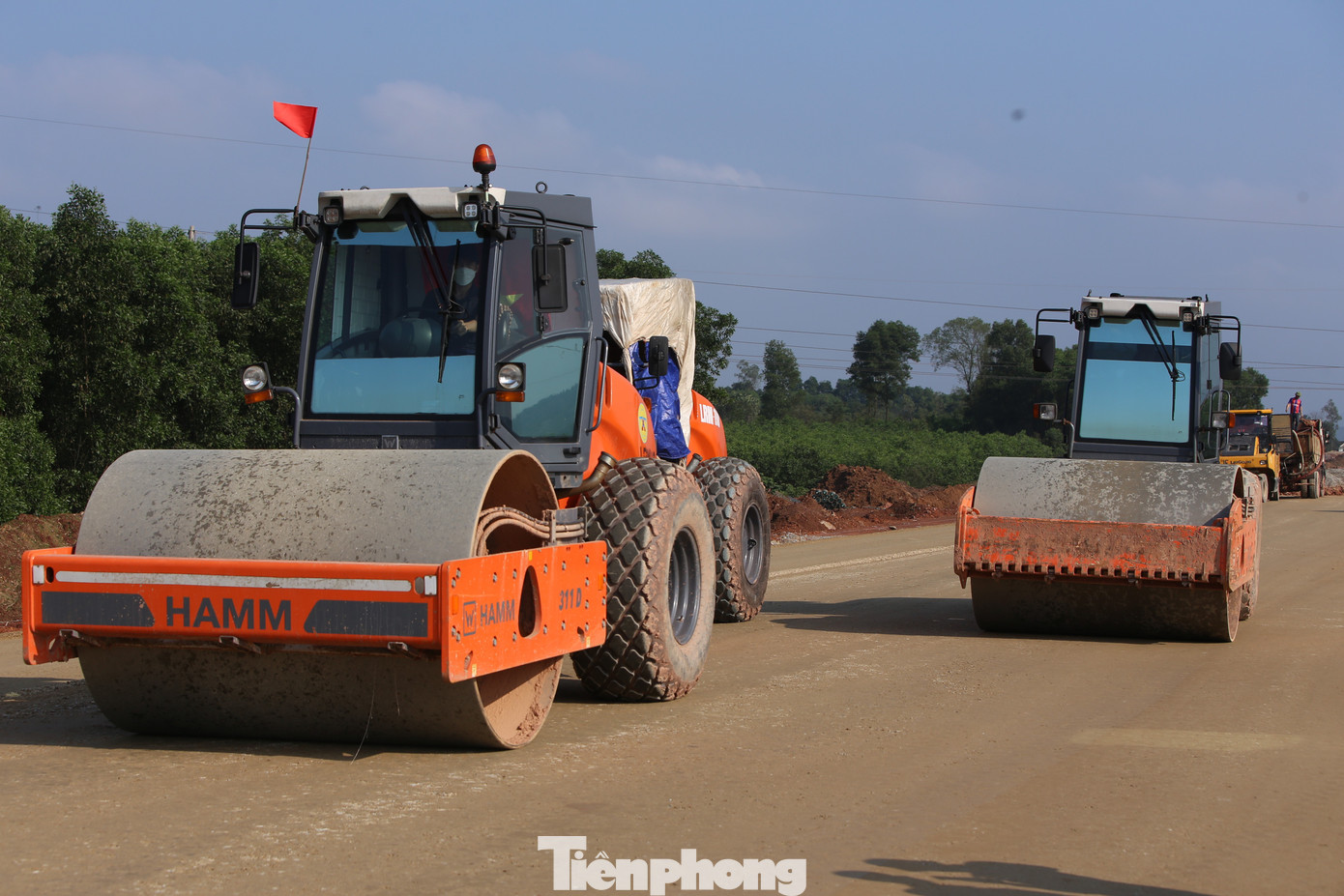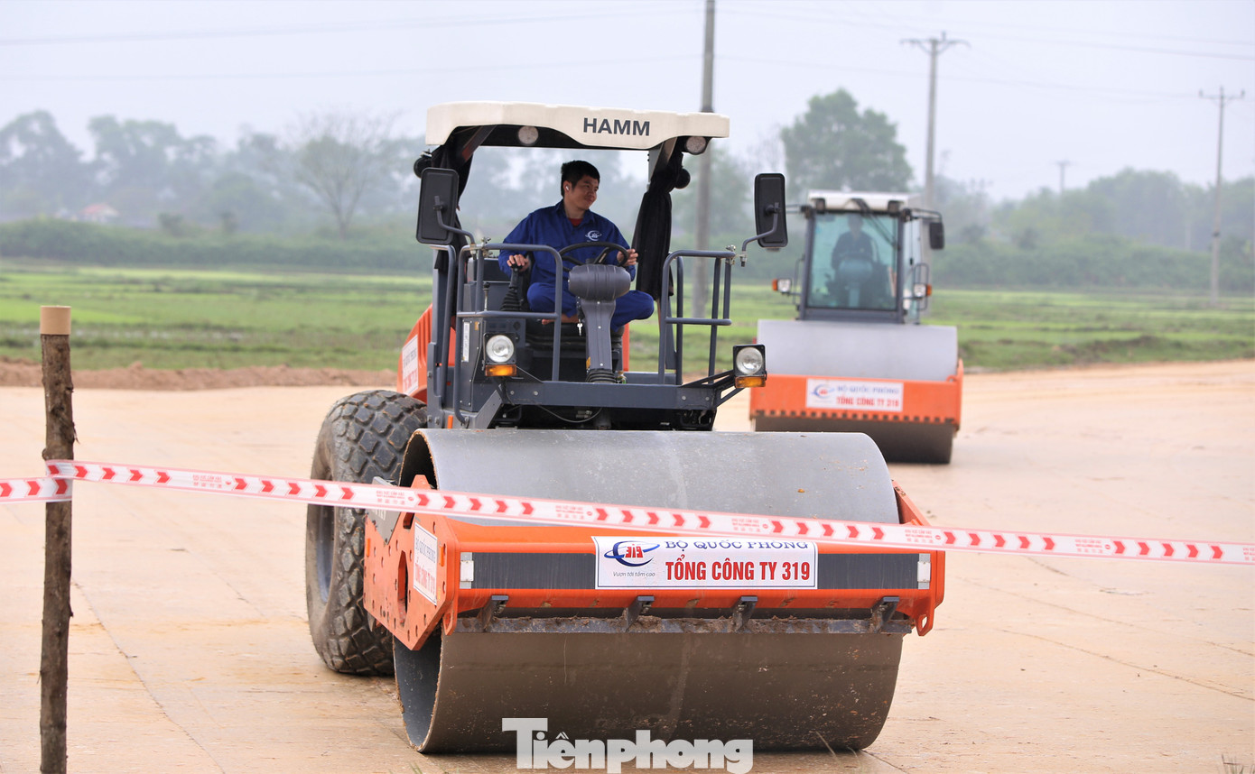 10km có cả trăm kỹ sư, công nhân cùng hơn 100 đầu xe chở vật liệu, 30 máy lu thi công đắp đất nền đường
