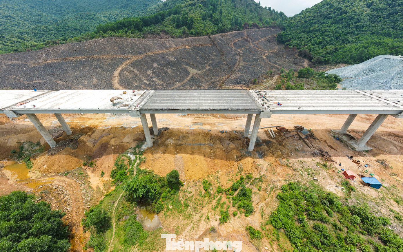 | Cầu cạn có hàng chục nhịp cầu, mỗi trụ cầu cao 30-40m, lao dầm Super T chắc chắn. |