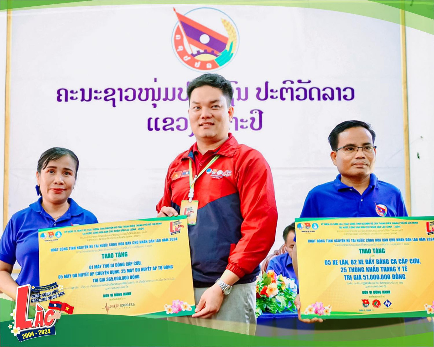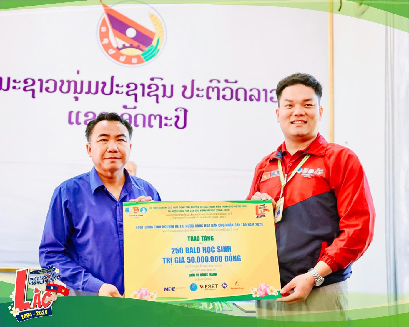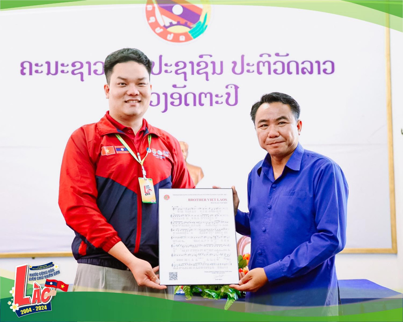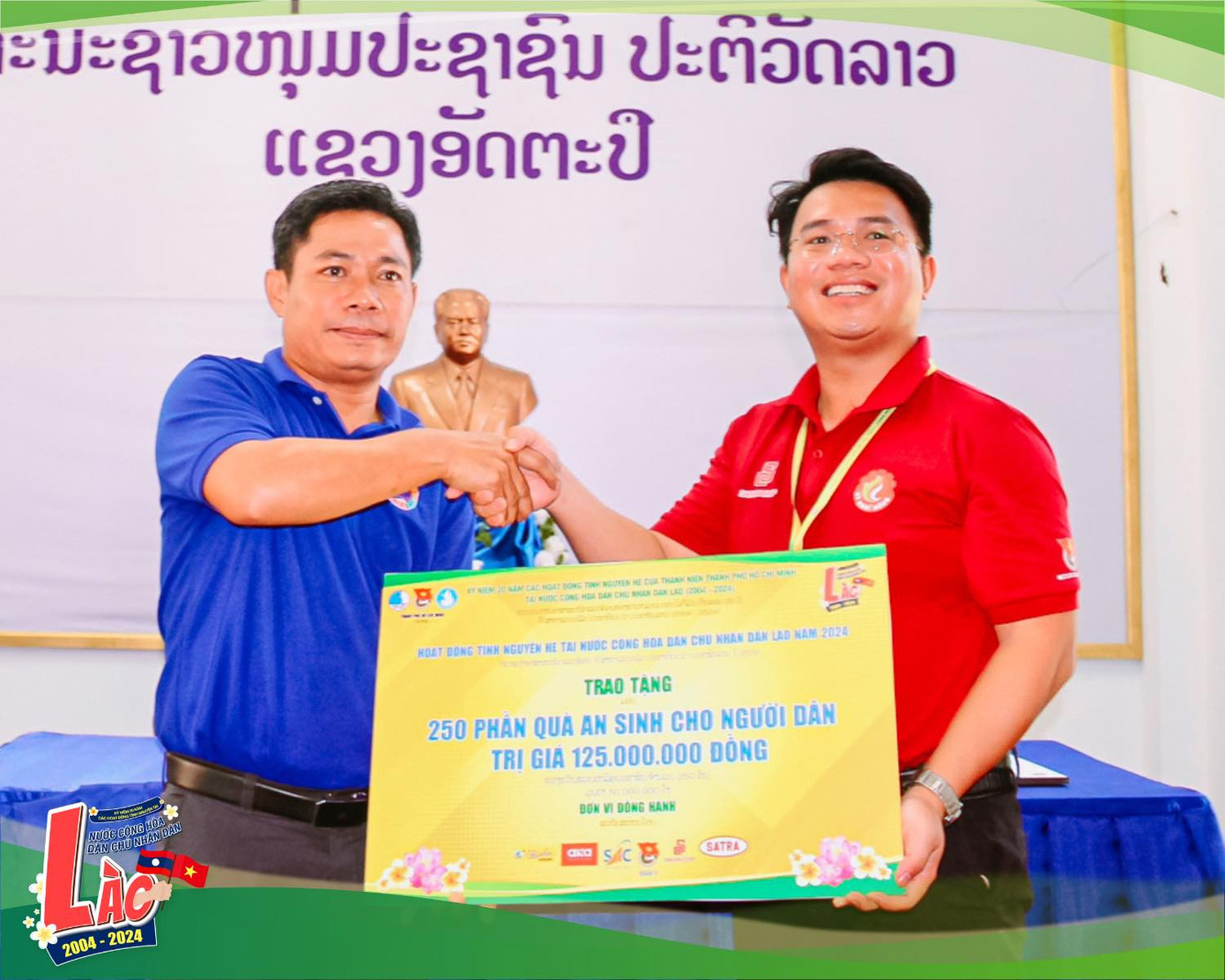 Trong buổi gặp mặt, anh Trương Tấn Nghiệp - Ủy viên Ban Thường vụ Thành Đoàn TP. HCM, Chỉ huy Trưởng các hoạt động tình nguyện Hè tại Lào đã khẳng định sự gắn bó keo sơn giữa hai nước và gửi gắm tình cảm Tuổi trẻ TP. HCM đến nước bạn Lào. Anh Phuvan Phomachanh - Bí thư Tỉnh Đoàn Attapeu đã thay mặt người dân và học sinh trên địa bàn tỉnh tiếp nhận các công trình và gửi lời chúc thuận lợi đến đoàn chiến sĩ tình nguyện.