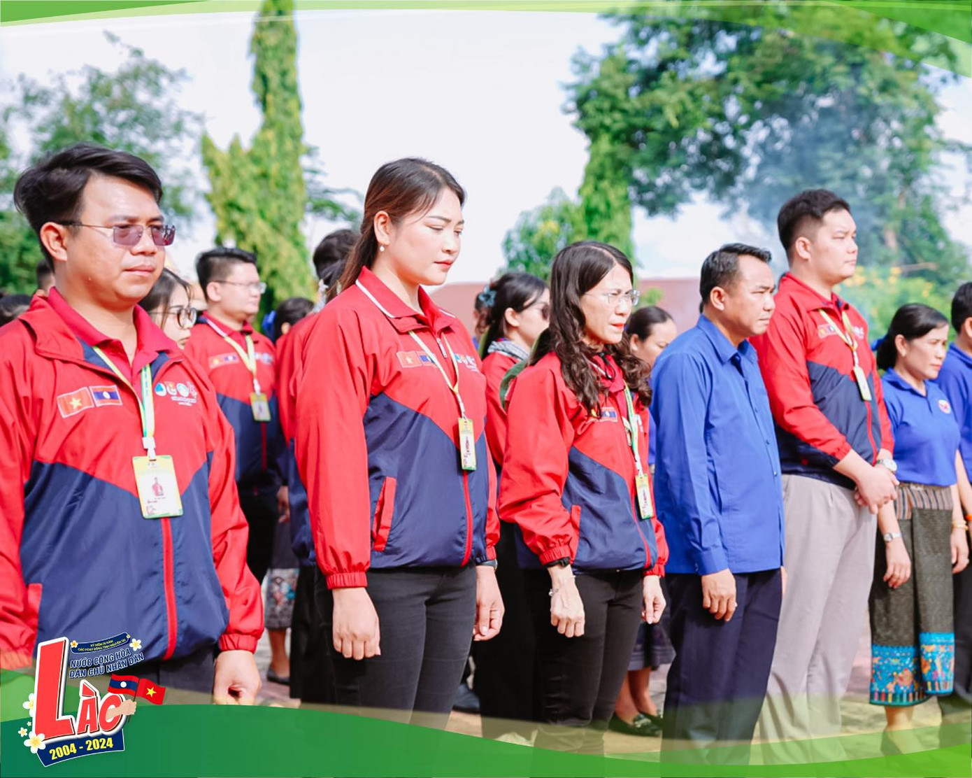 Trong không khí trang nghiêm của buổi lễ, các chiến sĩ đã dành một phút mặc niệm sự hy sinh anh dũng vì sự nghiệp cách mạng của quân và dân hai nước Việt Nam - Lào.