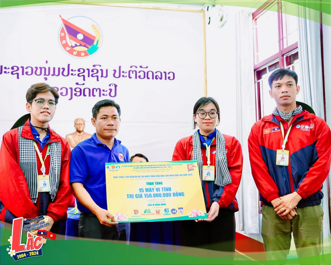 Sau buổi lễ dâng hoa, các chiến sĩ đã đến gặp gỡ lãnh đạo Tỉnh Đoàn Attapeu. Ban Chỉ huy chiến dịch cùng một số chiến sĩ đã đại diện đội hình và các đơn vị tài trợ trao tặng các công trình của chiến dịch đến Tỉnh Đoàn Attapeu, Sở Y tế tỉnh, Bệnh viện tỉnh, trường Hữu nghị Việt - Lào và Hội người Việt tại Lào.