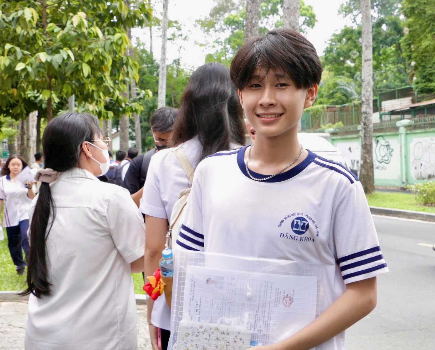 | Phúc Khang, trường THPT Trưng Vương (bên trên) và Tuấn Hoàng, trường THCS&THPT Đăng Khoa (bên dưới) sau khi kết thúc ngày thi đầu tiên. (Ảnh: Mỹ Đình) |