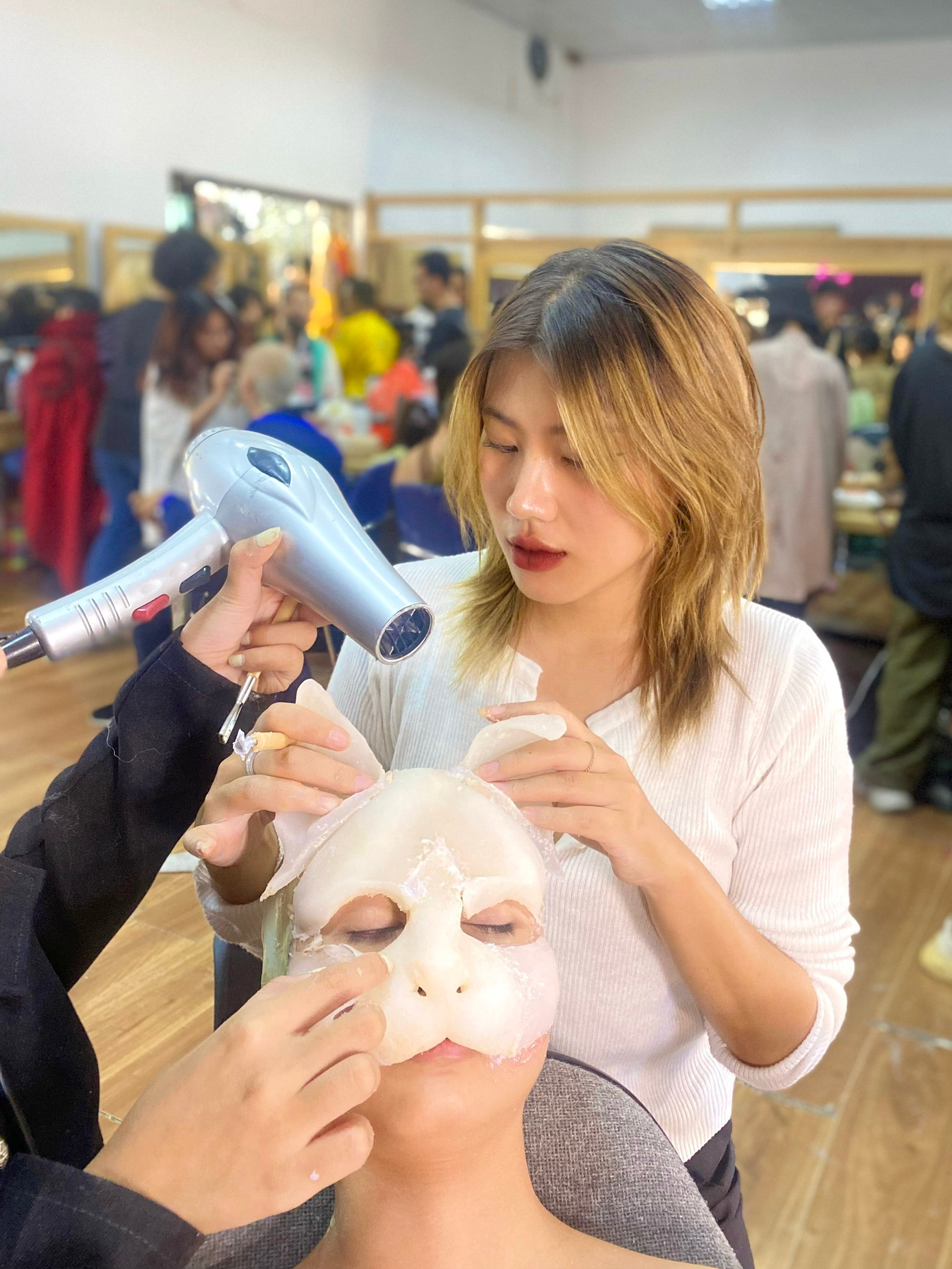 | Phương Nhi dành thời gian thực hành chuyên ngành của mình thông qua công việc Makeup. |