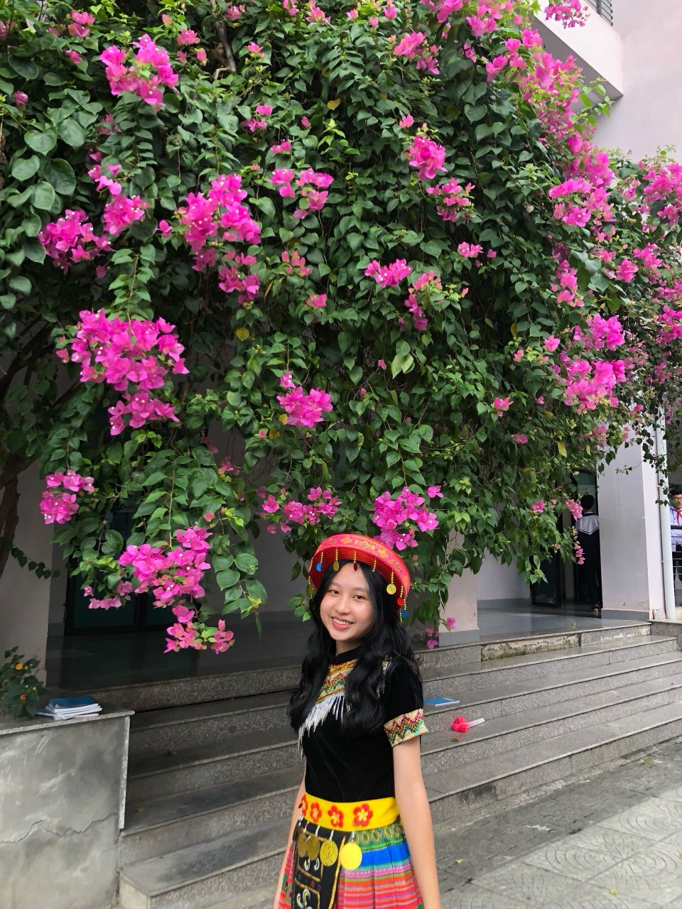 | Minh Phương trong màu áo trường THPT Chuyên Biên Hòa - Hà Nam. |