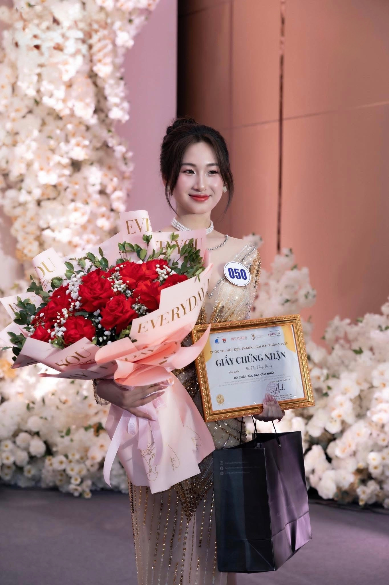Thùy Dung chia sẻ: “Được tham dự cuộc thi Nét đẹp thanh lịch Hải Phòng 2025 là một vinh dự lớn đối với mình. Mình vô cùng háo hức và mong chờ cơ hội này. Tuy nhiên, do lịch trình quay phim dày đặc vì vừa tham gia một dự án mới, cộng với việc phải cân bằng với lịch học, nên việc bám sát tiến trình cuộc thi trở thành một thử thách không nhỏ đối với mình. Dù vậy, mình luôn nỗ lực tham gia đầy đủ các hoạt động của cuộc thi. Một lần nữa, mình xin gửi lời cảm ơn chân thành đến Ban Tổ Chức vì đã tạo điều kiện và linh động trong việc sắp xếp lịch trình để mình có thể tham gia.”