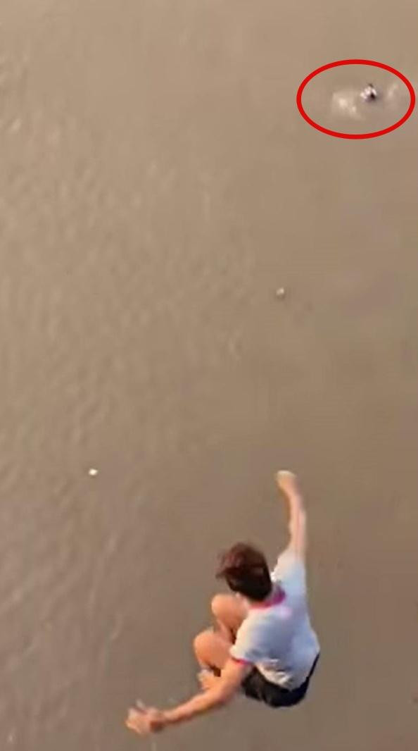 "Tôi chạy ra phía thành cầu, thấy một người áo trắng đang chới với cách cầu khoảng 50m. Tôi chẳng nghĩ gì, lập tức nhảy luôn xuống sông rồi bơi ra chỗ cô gái", anh Chính kể.