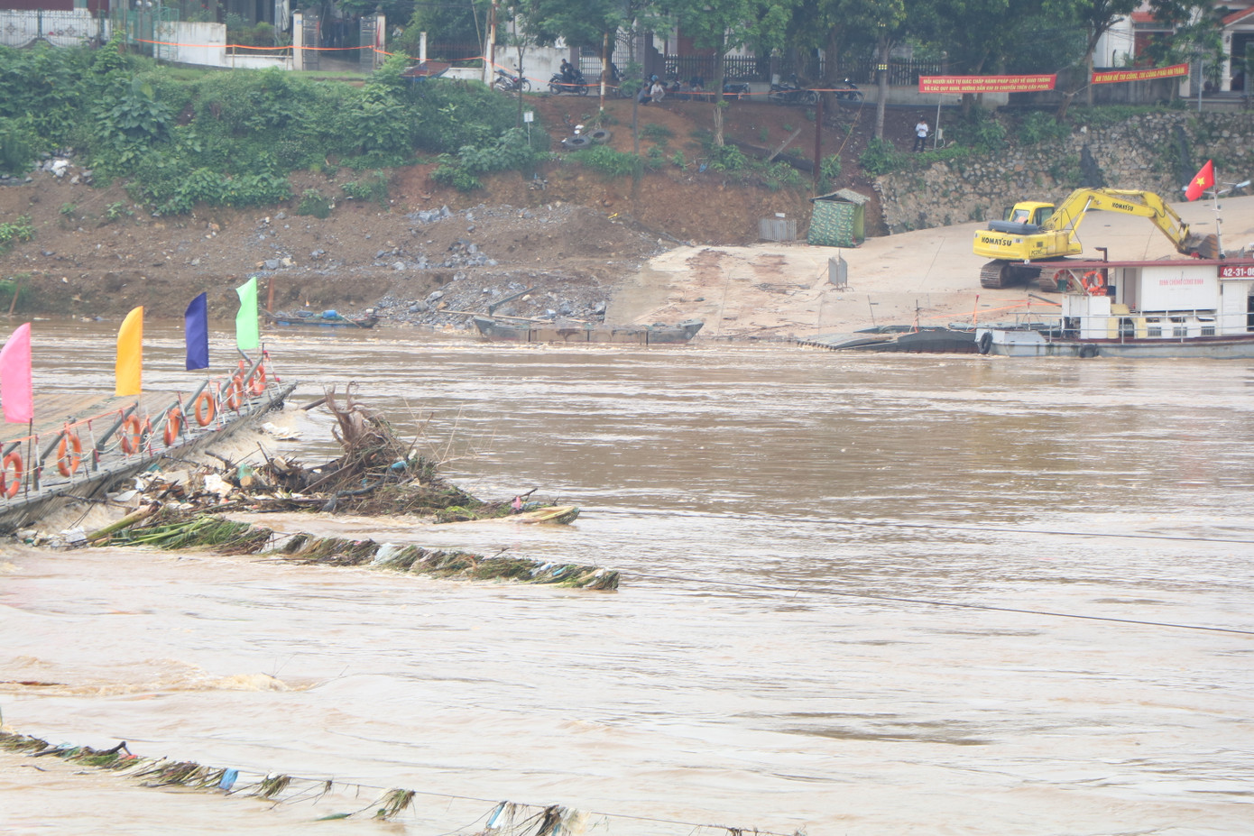 Nước sông Hồng dâng cao, cầu phao Phong Châu tạm dừng hoạt động