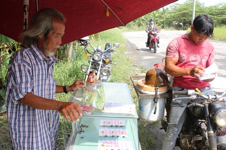 Hầu hết người hiếu kỳ thấy lạ nên dừng lại ngắm nghía chiếc mô tô, hỏi chủ nhân là ai rồi sẵn tiện mua vé số. Cách tiếp thị “độc” này khiến ông cũng bán vé số nhanh hơn, đỡ vất vả hơn so với việc đi bán rong.