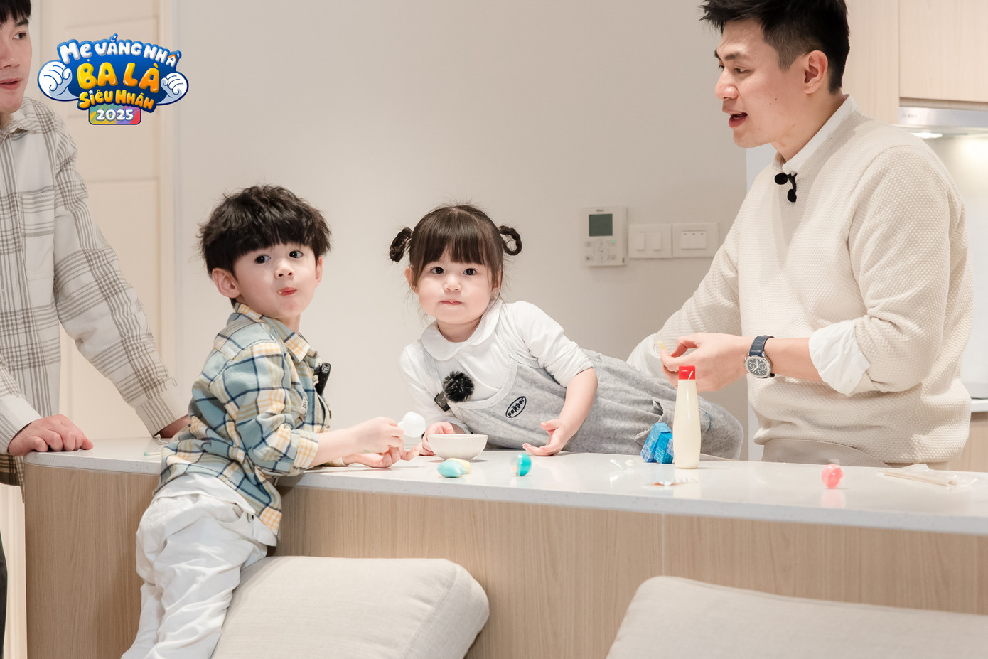 Từng có màn giành dép trong Mẹ Vắng Nhà Ba Là Siêu Nhân mùa trước, Pam - Dừa gây bất ngờ khi hòa thuận trong tập 5. Cặp nhóc tì vui vẻ cùng chơi đồ hàng, Pam Yêu Ơi còn sẵn sàng chia sẻ món rong biển khoái khẩu cho bạn thân. Trước sự thân thiết này, bố Hải Long trêu chọc: "Con bất ngờ chưa Dừa? Bạn Pam giờ không chỉ biết nói mà còn vẽ được nữa".
