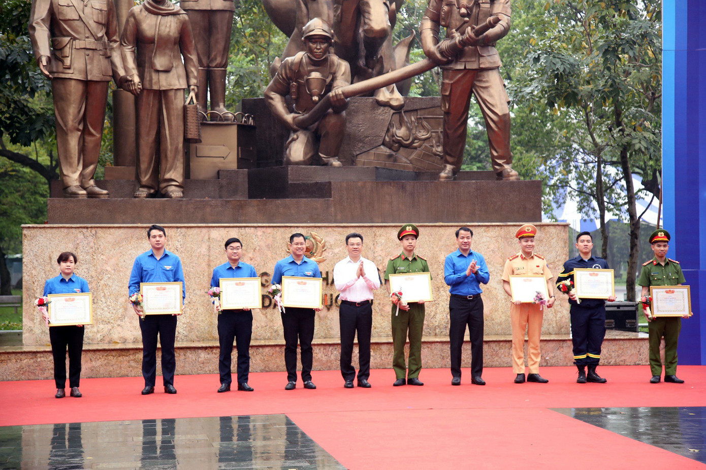 Tại Lễ phát động, Ban Tổ chức đã tuyên dương đơn vị điển hình trong công tác bảo đảm trật tự, an toàn giao thông và phòng cháy, chữa cháy năm 2023; trao tặng 30 phần quà cho đoàn viên, thanh niên, học sinh có hoàn cảnh khó khăn là con các gia đình có nạn nhân bị tai nạn giao thông, nạn nhân trong vụ cháy tại quận Thanh Xuân, Hà Nội; tặng thẻ, sổ bảo hiểm của đơn vị đồng hành.