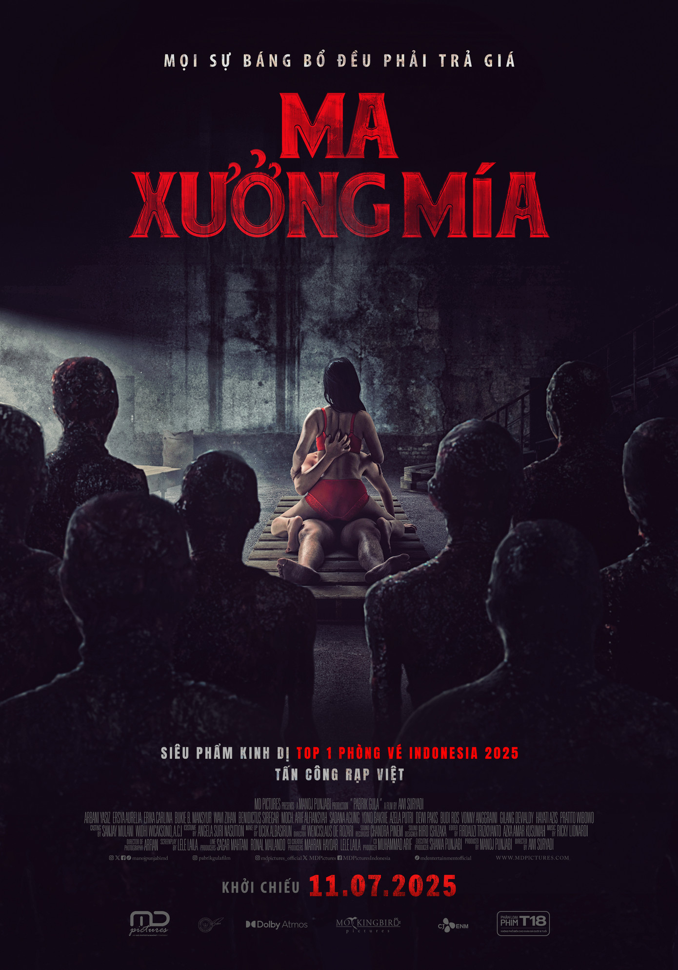 Phim Ma xưởng mía đã chính thức phát hành teaser trailer và poster, ấn định ngày khởi chiếu tại Việt Nam từ 11/7. Đây là phim kinh dị có doanh thu phòng vé cao nhất tại Indonesia trong năm 2025, với câu chuyện "nặng đô" và hình ảnh ấn tượng.