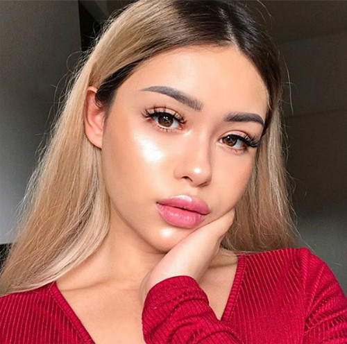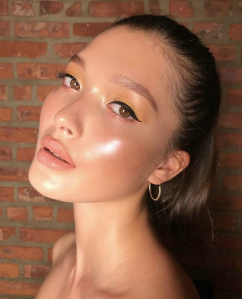 Bên cạnh đó, họ cũng áp dụng chiêu sử dụng nhũ, highlight bắt sáng tán nhẹ lên gò má, đầu mũi, cằm và một chút ở trán, nhằm tạo hiệu ứng da có độ bóng tự nhiên. Môi cũng có thể sử dụng son bóng nhẹ để tông thể diện mạo càng thêm tươi trẻ.
