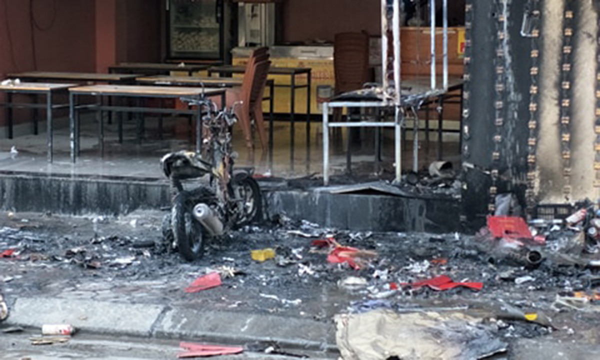 Ghi nhận của PV, phía trước của ngôi nhà bị khói bám đen kịt. Nhân viên của quán cũng đã bắt đầu quét dọn trong nhà.