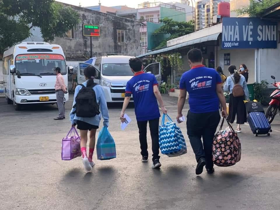 | Đội hình sinh viên tình nguyện luôn túc trực tại hai bến xe nhằm hỗ trợ sinh viên đến TP. HCM học tập (Ảnh: SAC). |
