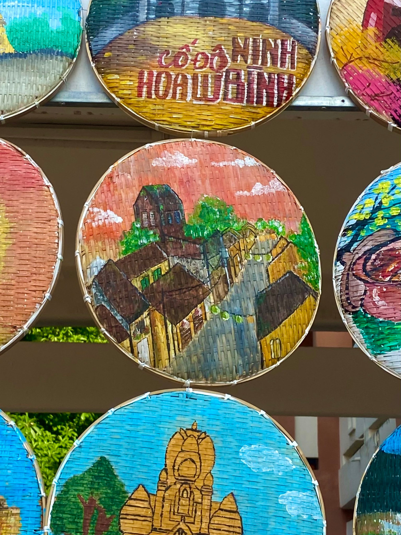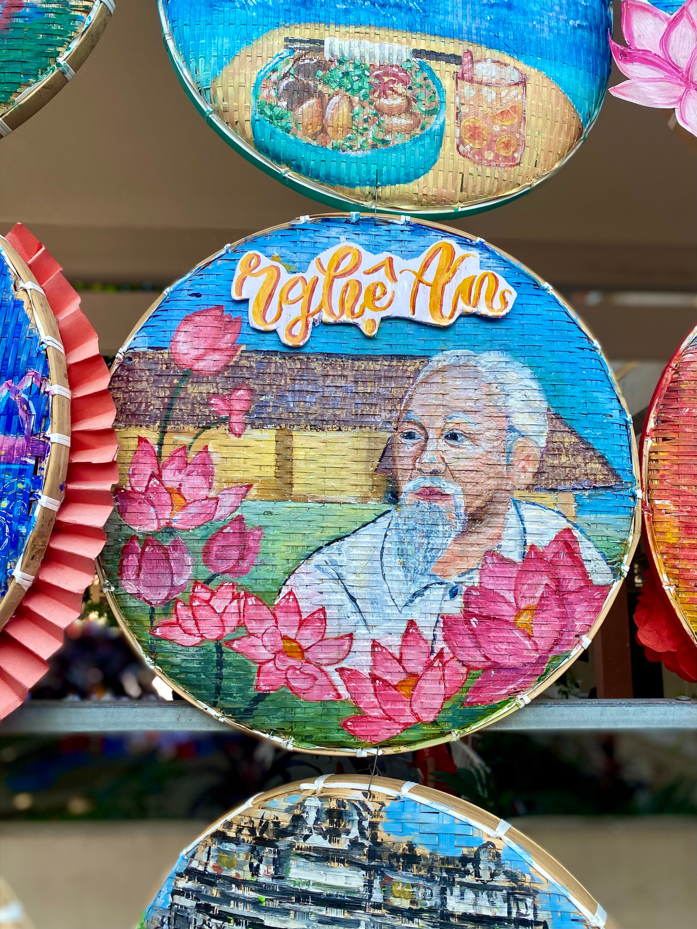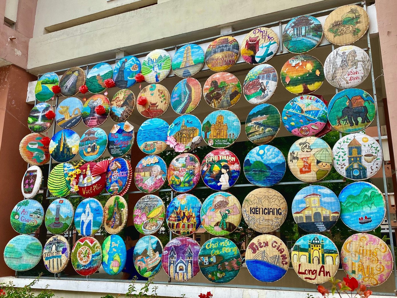 Dù không qua trường lớp, Gen Z vẫn vẽ xịn xò như dân chuyên, biến những chiếc mẹt tre giản dị thành bức tranh tròn đầy với sắc cờ đỏ sao vàng rực rỡ. Hình ảnh của Bác Hồ kính yêu cùng các địa điểm đặc trưng của nhiều tỉnh thành như tháp Chàm (Bình Thuận), tháp Nghinh Phong (Phú Yên), hoa phượng đỏ (Hải Phòng)… được các hoa-tay-nhí NHH-ers thể hiện tinh tế.