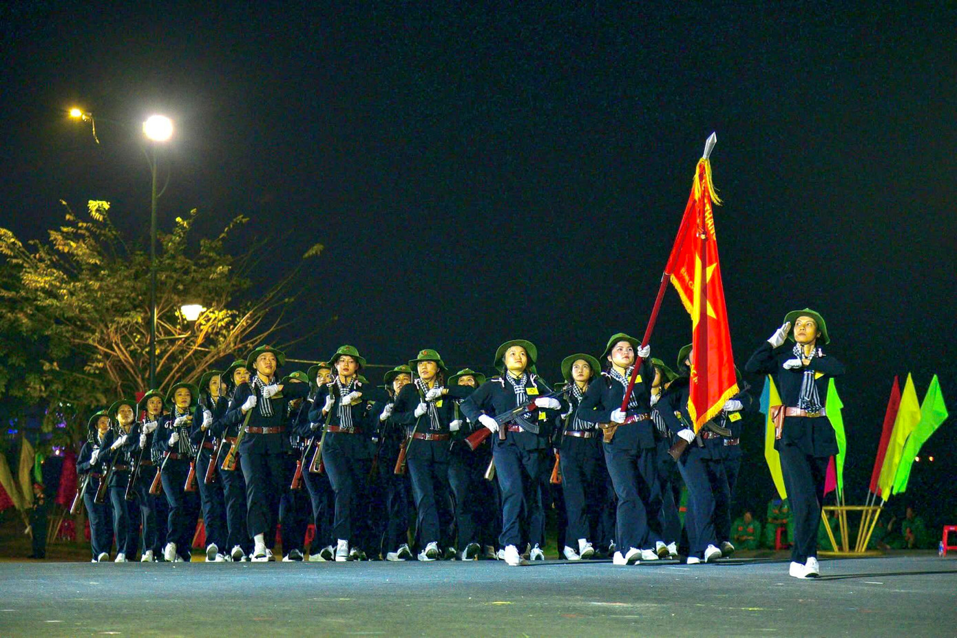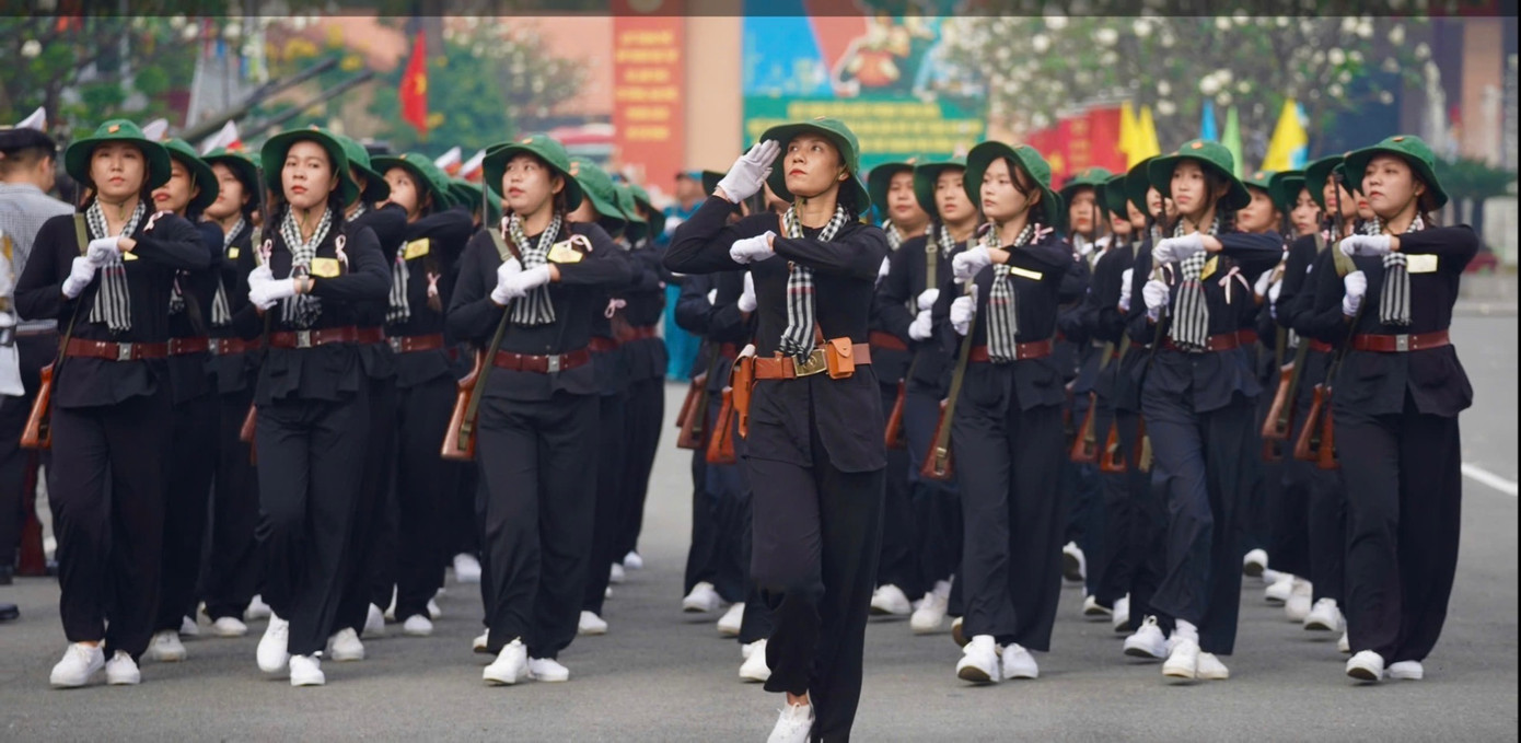 Giữa thao trường nắng gió, khối nữ dân quân “chiến” hết mình với gương mặt ngẩng cao đầy tự hào, thể hiện khí phách kiên cường của thế hệ mới.