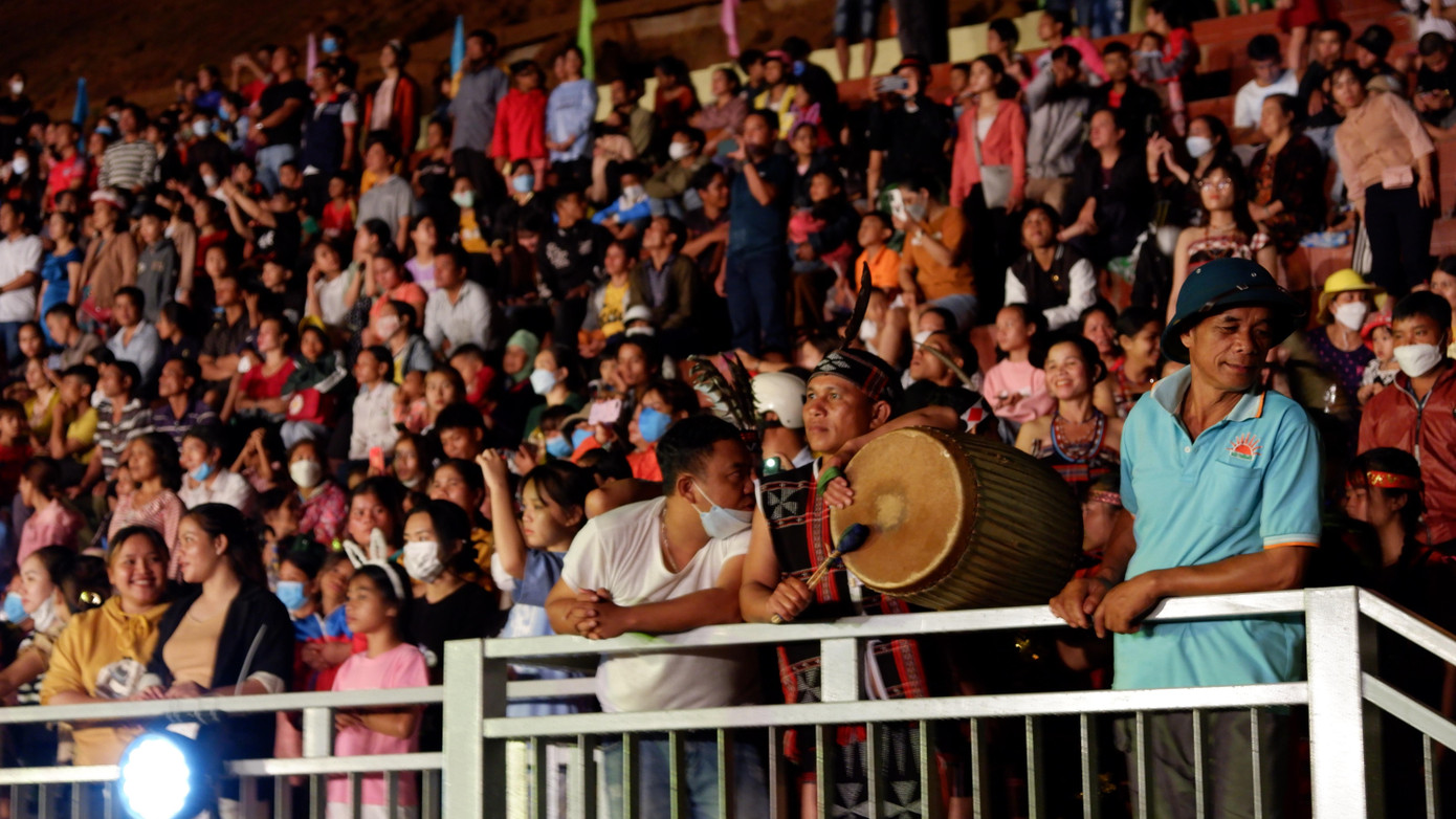 | Khán đài sân vận động huyện miền núi Đông Giang (Quảng Nam) không còn chỗ trống trong đêm khai mạc. Hội thi thể thao các dân tộc thiểu số trở thành ngày hội của người dân địa phương. |