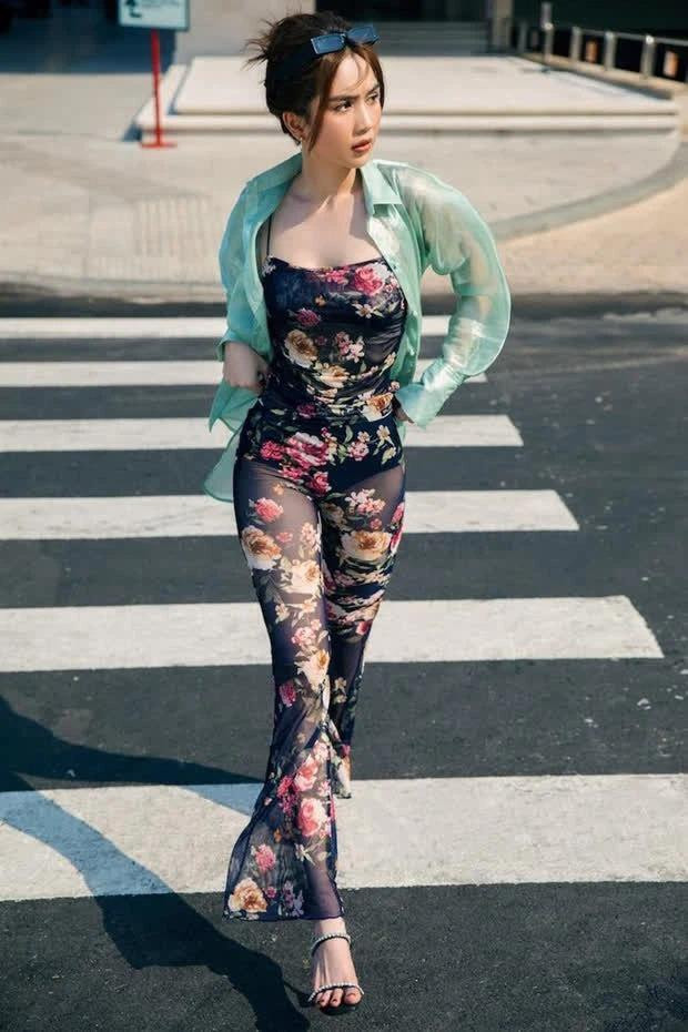 Một lần khác, Ngọc Trinh lại diện quần voan mỏng manh ra phố. Cũng may là màu sắc và họa tiết hoa giúp “nữ hoàng nội y” không bị lộ liễu quá mức.