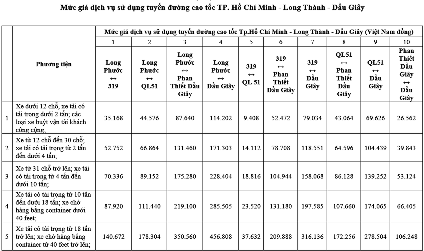 Được biết, tuyến TPHCM - Long Thành - Dầu Giây trước đó đã được phê duyệt phương án tài chính với quy định cụ thể về mức thu và lộ trình tăng phí 3 năm/lần, tỷ lệ tăng 12%/lần. Việc tăng giá phí nhằm đảm bảo hiệu quả dự án và khả năng trả nợ các khoản vay đầu tư ban đầu.