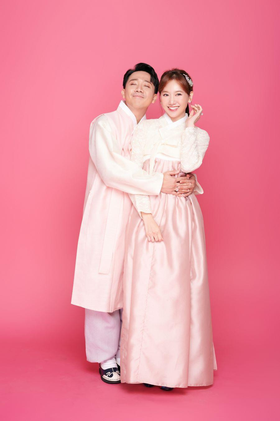 Qua loạt ảnh, Hari Won một lần nữa gây ấn tượng với vẻ đẹp trong treo và dịu dàng. Bộ hanbok tông hồng nhẹ nhàng tôn lên làn da trắng sáng của nữ ca sĩ kiêm diễn viên. 'Người đẹp' trẻ trung và không giấu được vẻ hạnh phúc bên ông xã, phần nào đập tan tin đồn hôn nhân lục đục suốt thời gian qua. Trong khi đó, Trấn Thành nổi bật với phong thái bảnh bao và nam tính.