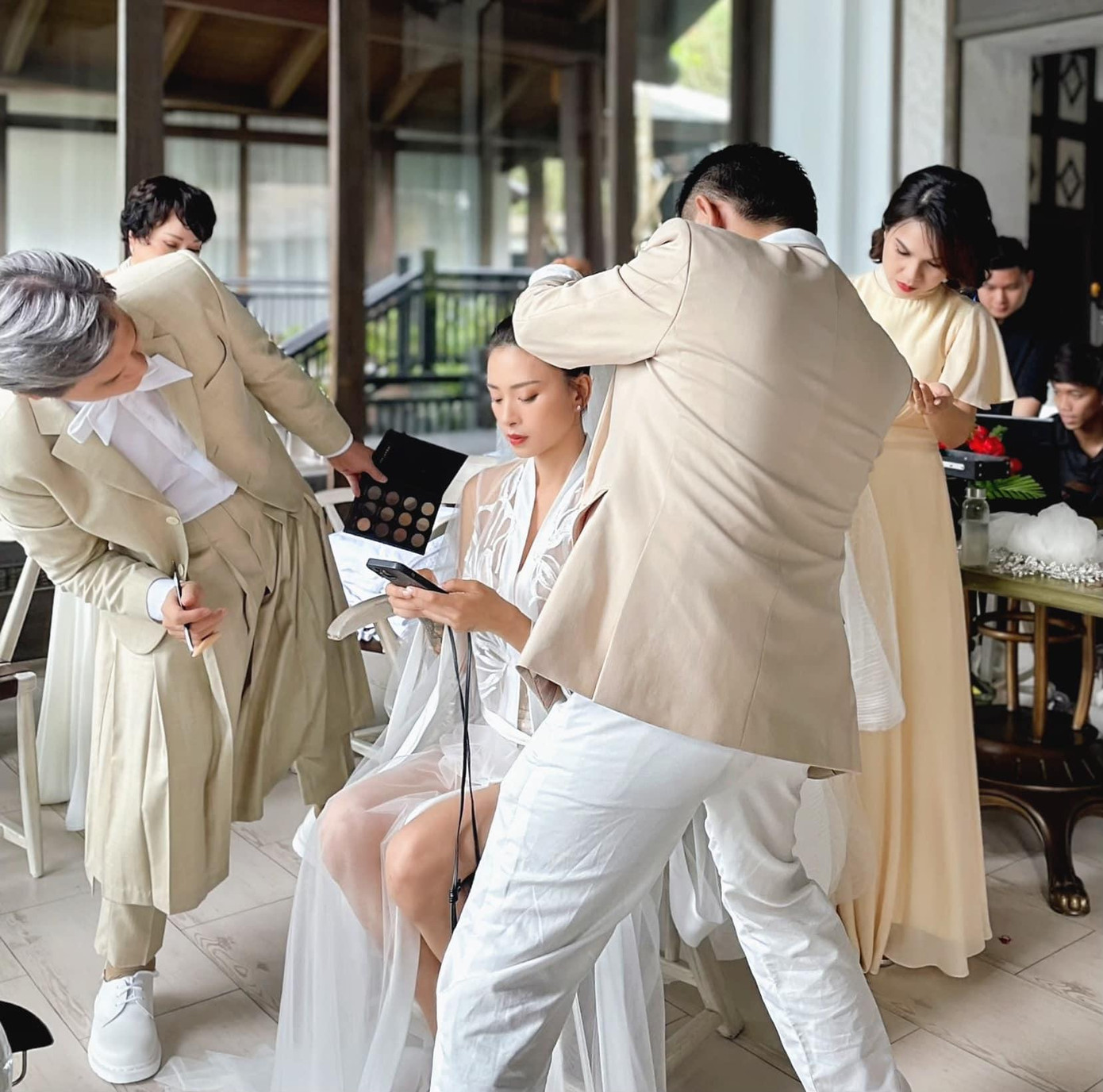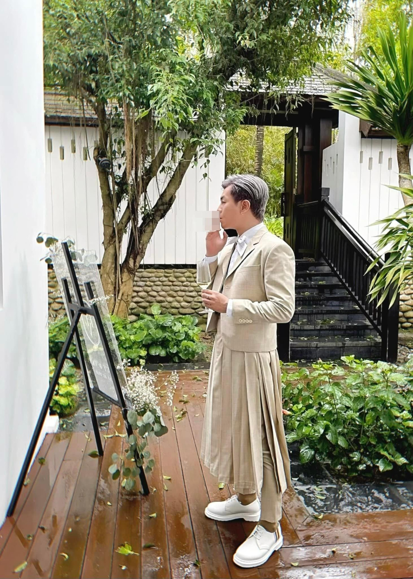 Vì được Ngô Thanh Vân mời làm phù dâu đặc biệt nên chuyên gia trang điểm Nam Trung đã diện trang phục độc đáo gồm áo vét dáng lửng và chân váy xòe. Trên trang cá nhân, Nam Trung cũng đăng tải nhiều bức ảnh đang mặc đồ phù dâu để trang điểm cho Ngô Thanh Vân trong ngày trọng đại.