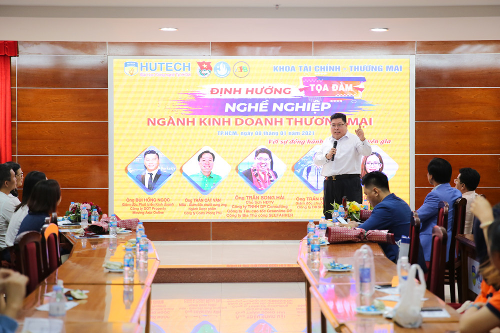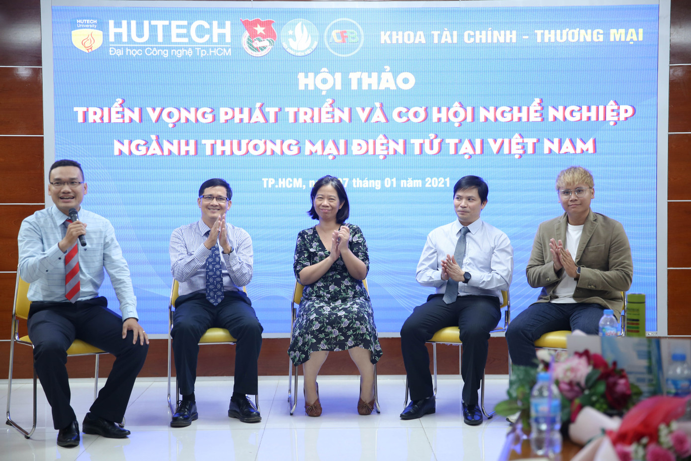 Không đơn giản chỉ là đăng hình mặt hàng lên website hay fanpage rồi chờ khách hàng click chọn như nhiều người lầm tưởng, các ngành Thương mại điện tử và Kinh doanh thương mại có phạm vi kiến thức khá lớn và cơ hội nghề nghiệp cũng rộng hơn rất nhiều. Đây là điều đầu tiên mà các chuyên gia chia sẻ với sinh viên HUTECH tại buổi tọa đàm, giúp các bạn nắm được tiềm năng phát triển của ngành học để kịp thời có định hướng học tập, rèn luyện.