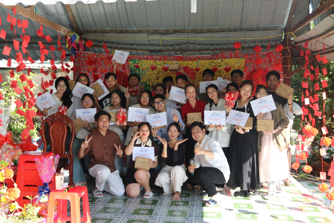 Đặc biệt, trong buổi giao lưu tối, cả nhóm tổ chức chương trình văn nghệ, với những tiết mục đặc sắc, đón Giao thừa, gửi cho nhau những lời chúc Năm mới ý nghĩa khiến không gian làng quê trở nên ấm cúng lạ kỳ. Khoảng cách về tuổi tác, hoàn cảnh như tan biến trong không khí ấm áp, đong đầy yêu thương. “Sức trẻ, sự nhiệt huyết của mọi người tạo cho mình cảm giác gần gũi, kéo mình ra khỏi nỗi sợ của bản thân”, lời chia sẻ chân thành của Hải Yến (19 tuổi, ĐH Kinh tế TP. HCM).