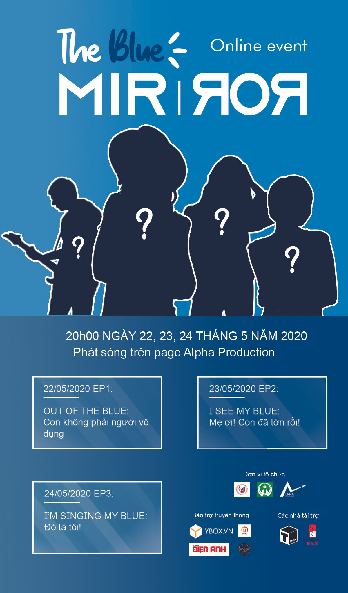Chuỗi sự kiện "The Blue Mirror" online sẽ diễn ra từ ngày 22/5/2020 đến 24/5/2020. Chương trình hứa hẹn sẽ đem đến cho các bạn trẻ những cung bậc cảm xúc khó quên, những suy nghĩ lắng đọng qua 3 ngày trải nghiệm.