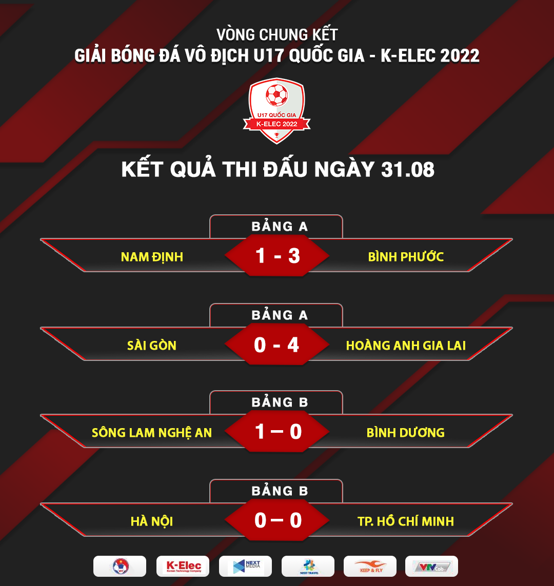 Ngày mai (01/09), giải U17 Quốc gia - K-Elec 2022 sẽ tiếp tục diễn ra với 2 cuộc đối đầu vô cùng hấp dẫn: U17 PVF - U17 Đồng Tháp và U17 Phú Yên - U17 Huế.
