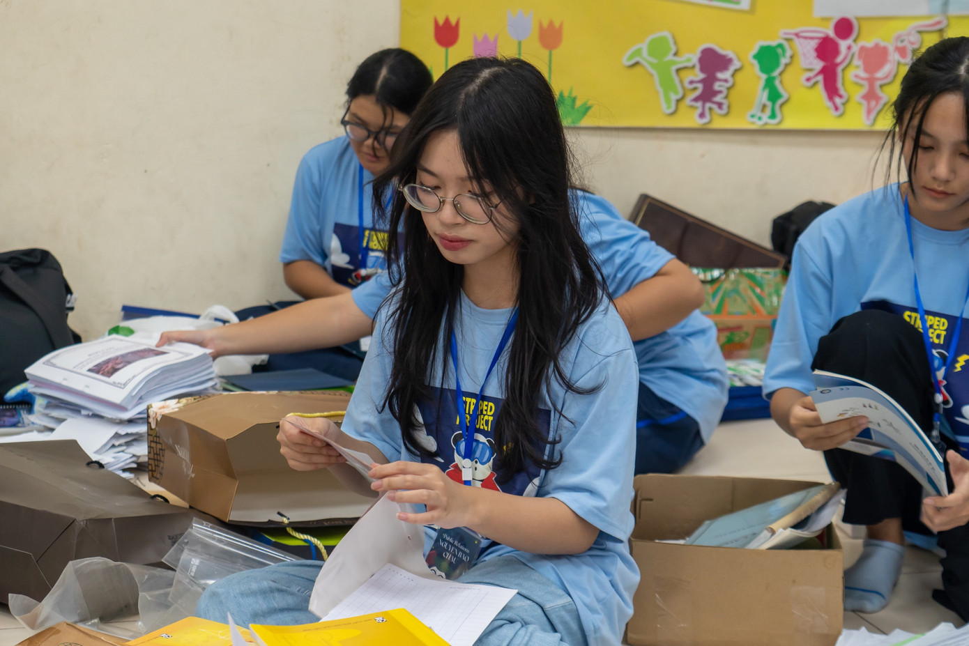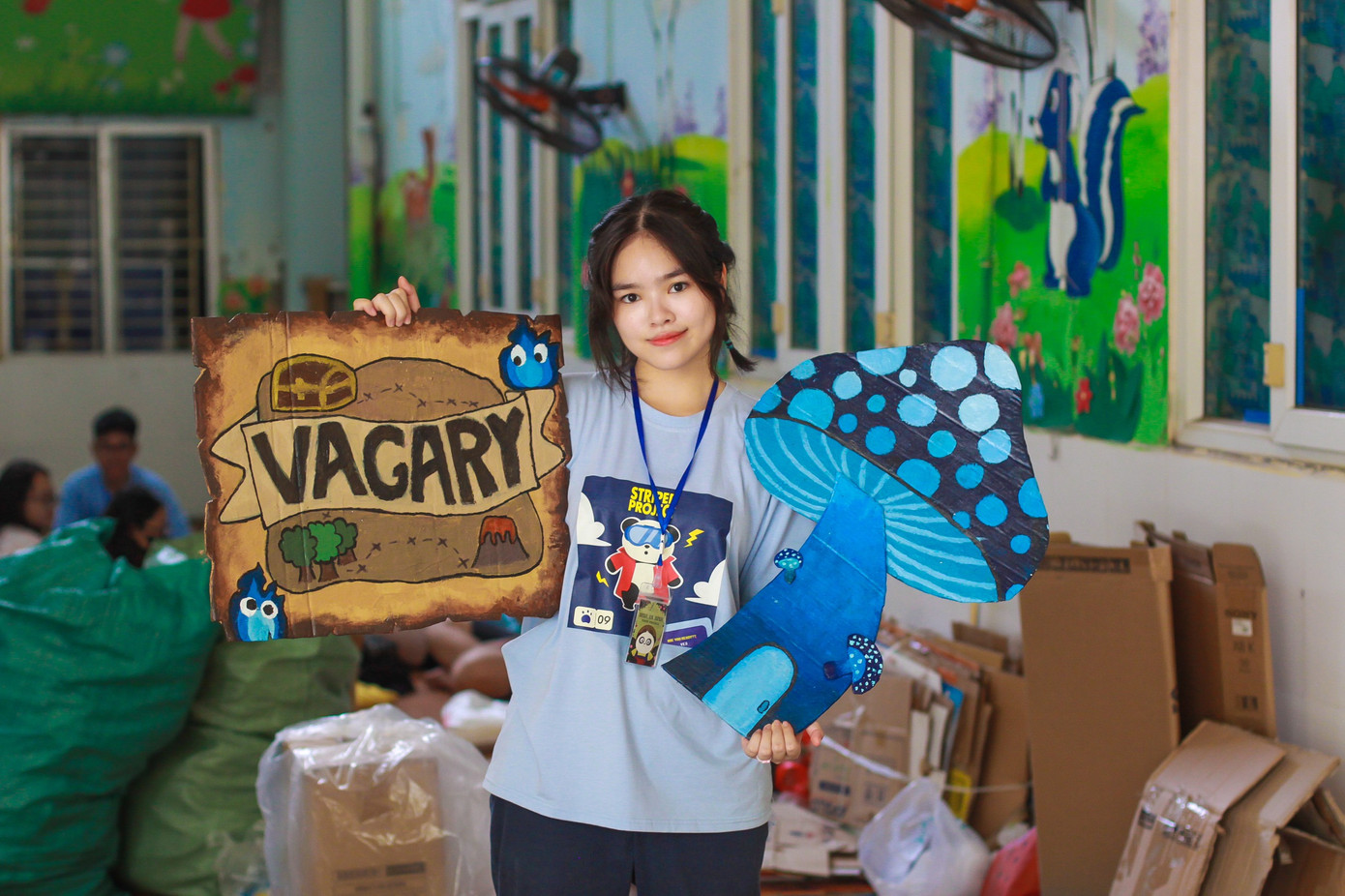 “Sau khi thu gom, tụi mình sẽ tiến hành phân loại đối với từng nguyên liệu. Ví dụ với giấy, tụi mình sẽ phân thành 2 loại là giấy dùng rồi và giấy chưa dùng. Những loại chưa dùng, tụi mình sẽ biến chúng thành một số đồ lưu niệm, đồ handmade bày bán tại hội chợ “Giờ Phe” để gây quỹ, mua đồ dùng học tập các em nhỏ trong chuyến đi “Ngày Tình nguyện”. Hoặc với sách, truyện, tụi mình cũng sẽ phân loại, lọc ra những cuốn sách, truyện nào còn mới, còn dùng được, giữ lại để làm quà tặng cho các em trong chuyến đi này”.