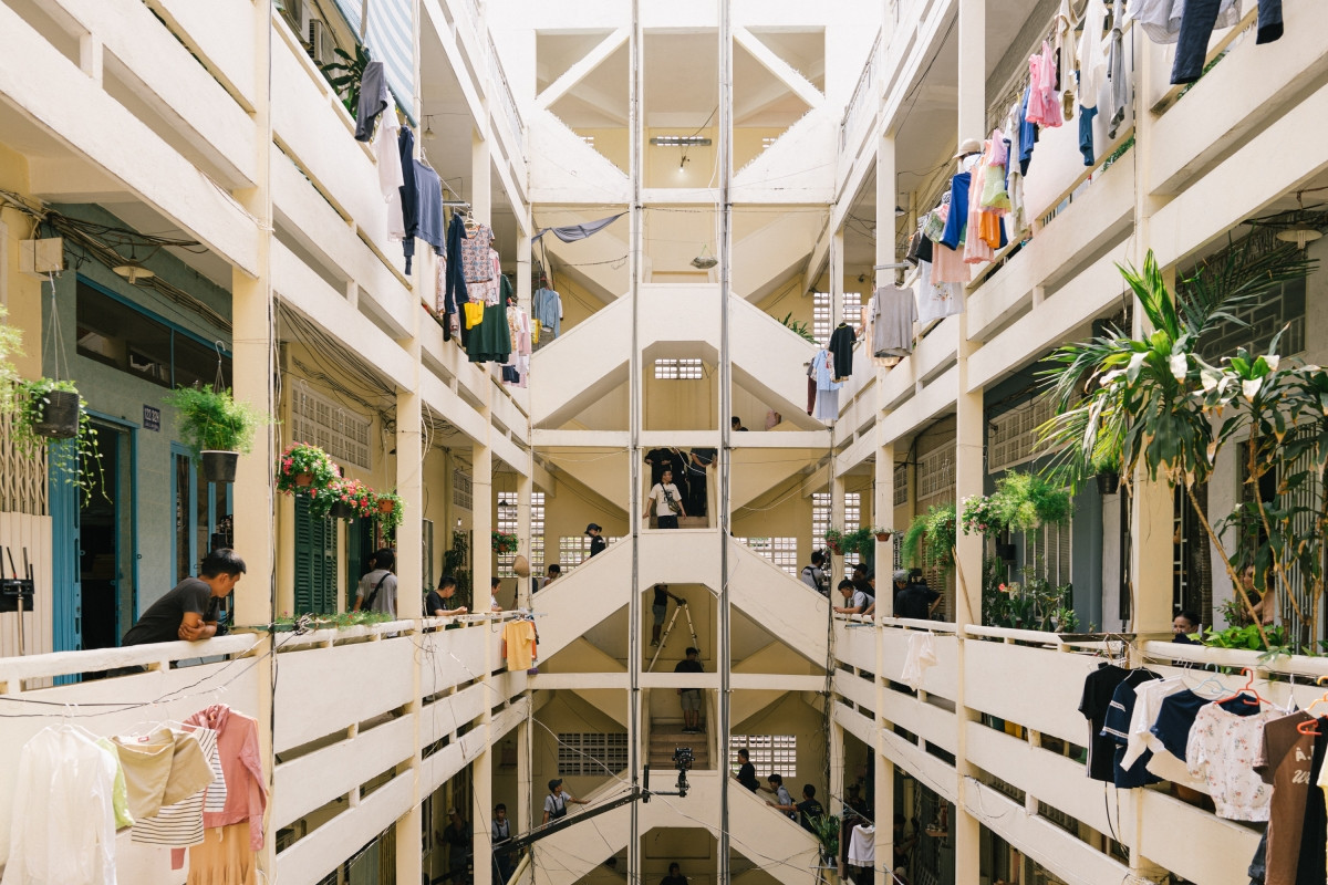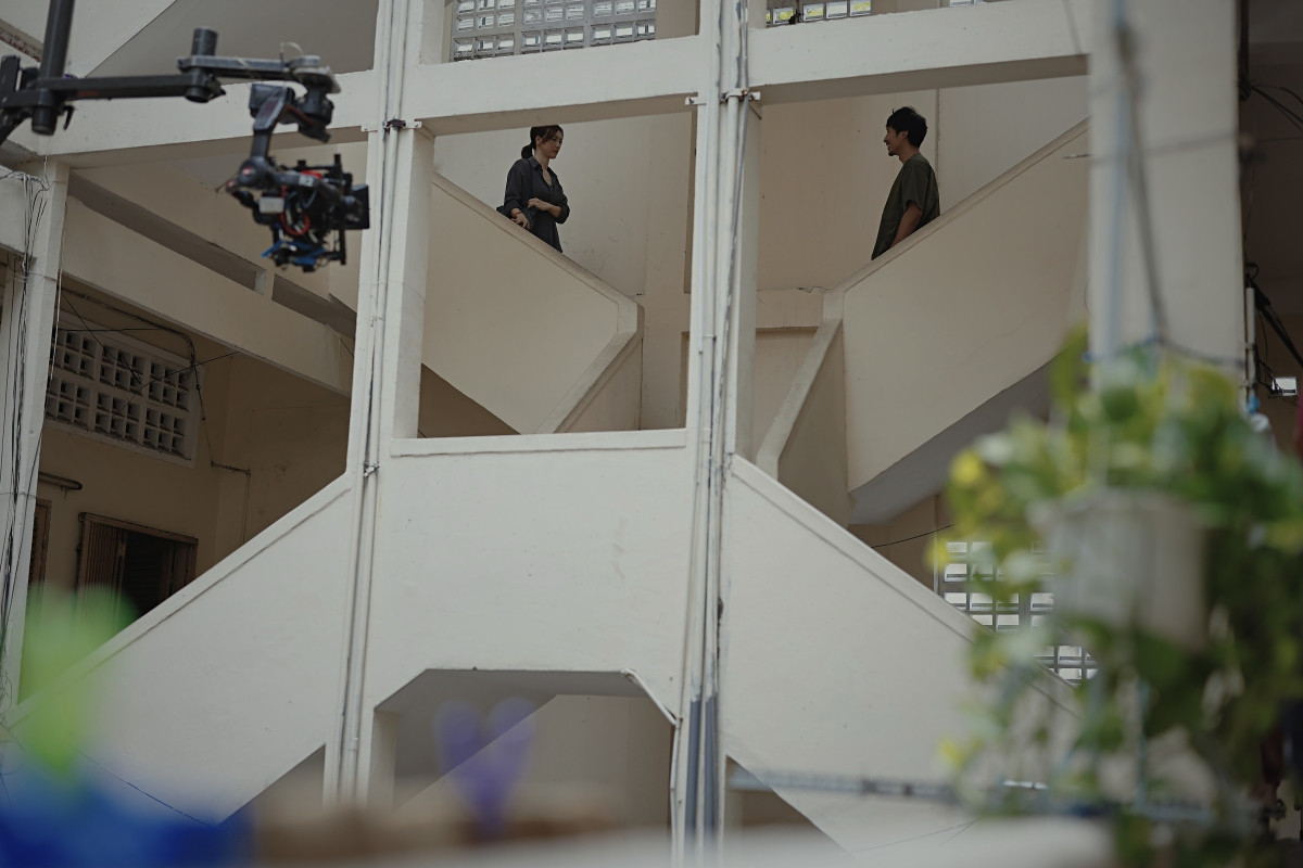 Để có được những thước phim toàn cảnh tại chung cư, ê kíp làm phim Mai phải lắp đặt cần cẩu dài, vận chuyển máy quay bằng cầu thang bộ lên đến tầng cao, căng tấm bạt bao phủ toàn bộ khu vực sân sinh hoạt chung nhằm đảm bảo điều kiện ánh sáng tốt nhất.