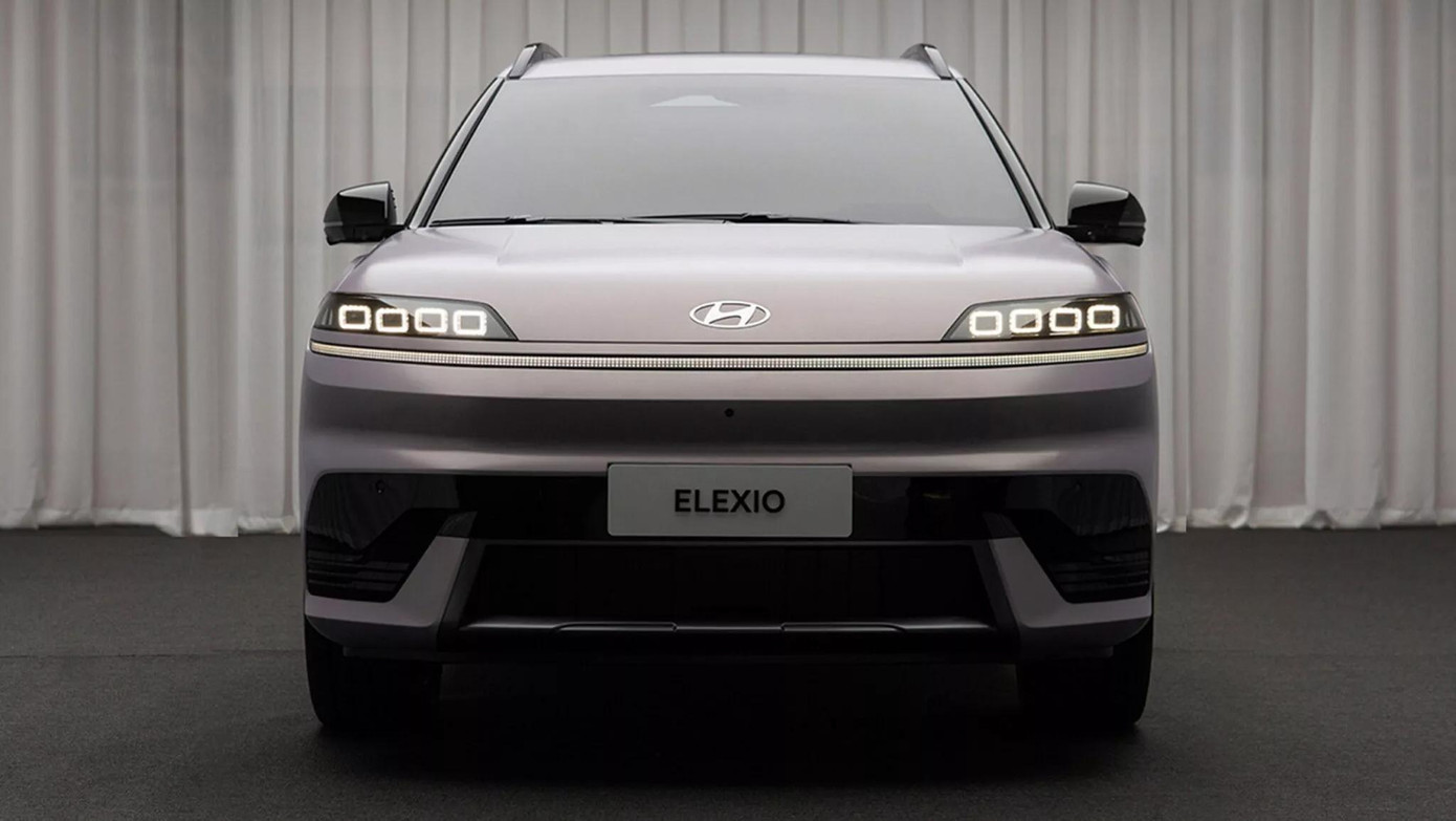Ngoài tên gọi mới lạ, Elexio cũng có ngôn ngữ thiết kế khác biệt so với dòng sản phẩm Ioniq hiện tại của Hyundai. Phần đầu xe có kiểu dáng phẳng, tích hợp hốc gió thể thao ở cản trước và dải đèn LED kéo dài nằm dưới cụm đèn pha đặt ngang.