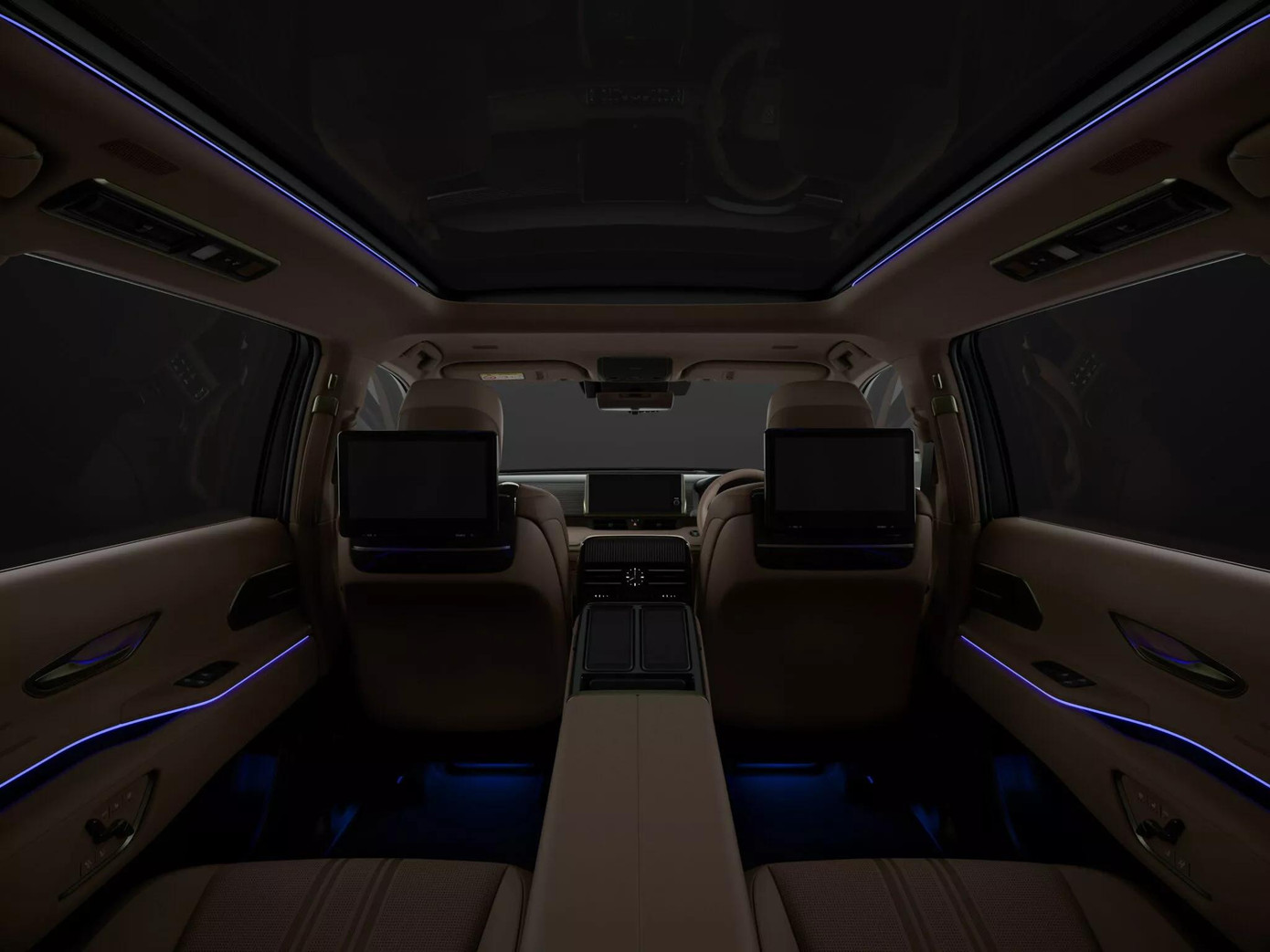 Xe được trang bị bậc bước lên/xuống chỉnh điện, cửa sau bản rộng, tay nắm hỗ trợ, đèn trần ambient, bàn gập, các bề mặt kháng khuẩn, móc treo áo và cả giá để đồ xỏ giày.