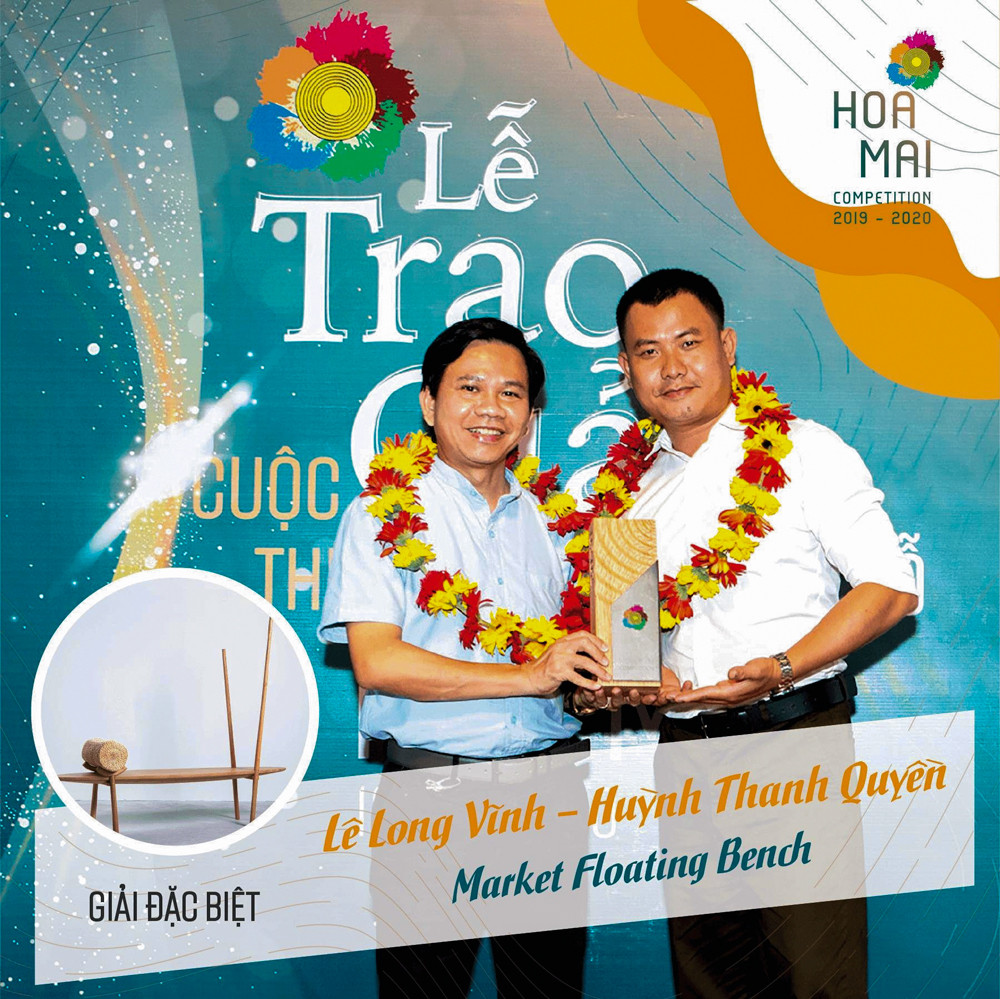 ThS Lê Long Vĩnh và ThS Huỳnh Thanh Quyền bên sản phẩm do mình thiết kế.Khó quên được buổi trao giải đầy kịch tính năm 2019 – 2020 của giải thưởng "Hoa Mai", ThS Vĩnh kể lại: “Đầu tiên, Hội đồng tiến hành trao giải Khuyến khích trước và gọi tên mình. Nhưng vào phút chót, khi mọi giải thưởng đã được yên vị trong tay chủ nhân của nó, Chủ tịch Hội Mỹ nghệ và Chế biến gỗ TP. HCM (HAWA) bỗng xuất hiện và tuyên bố có sự nhầm lẫn trong khâu trao thưởng, Hội đồng sẽ trao một giải thưởng rất Đặc biệt cho một tác phẩm thật đặc biệt! Thế rồi, ông gọi tên mình và thầy Quyền, phân tích chi tiết bài thi của mình cho khán giả cùng nghe. Từ giải Khuyến khích bỗng vụt lên giải Đặc biệt – một giải thưởng cao quý trước nay chưa từng có. Đó là niềm vinh dự và cảm xúc khó diễn tả thành lời".