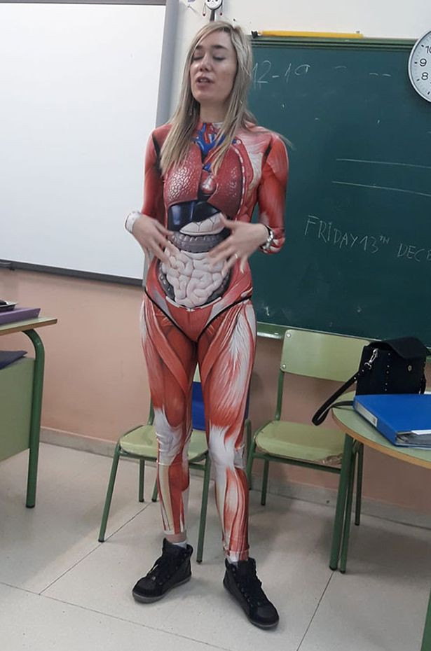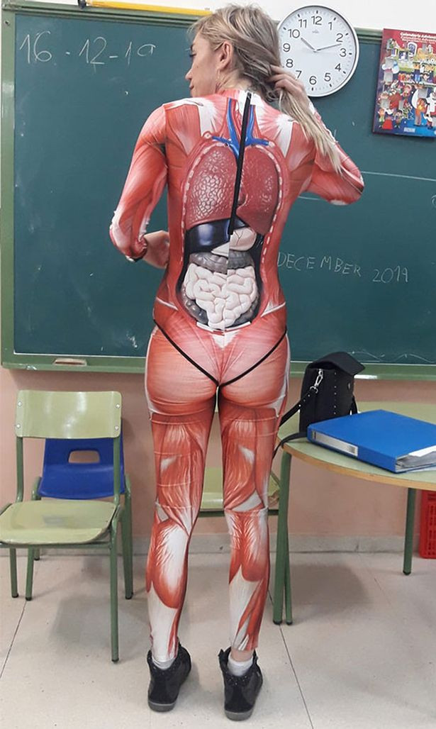 Mới đây, cô đã sử dụng một bộ đồ toàn thân bó sát in hình vị trí của các cơ quan trong cơ thể cho bài giảng môn khoa học về giải phẫu người.