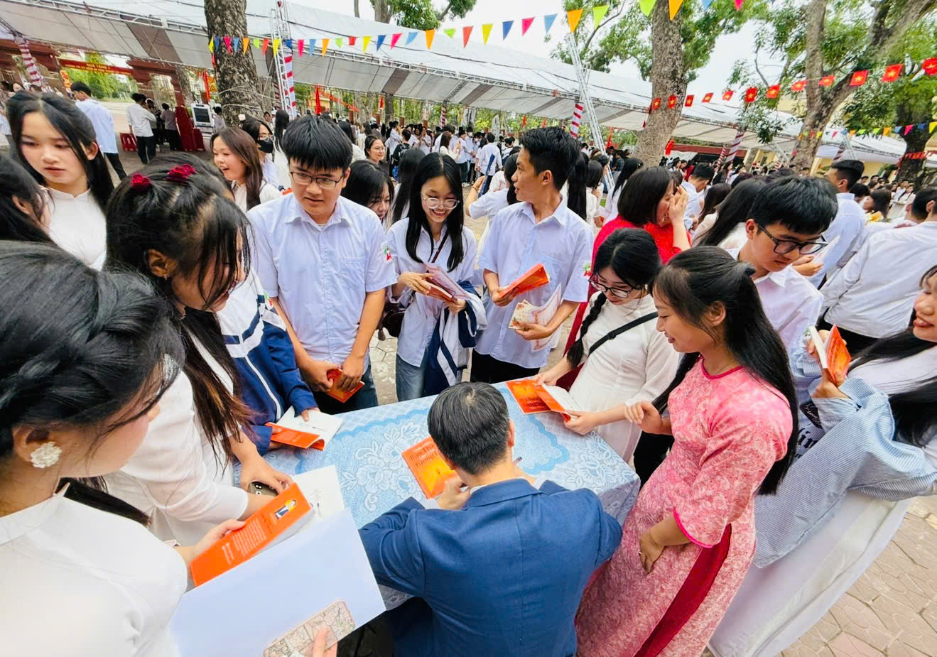 | Tác giả, nhà báo Nguyễn Tuấn Anh ký tặng sách học sinh Trường THPT Thanh Hà. |