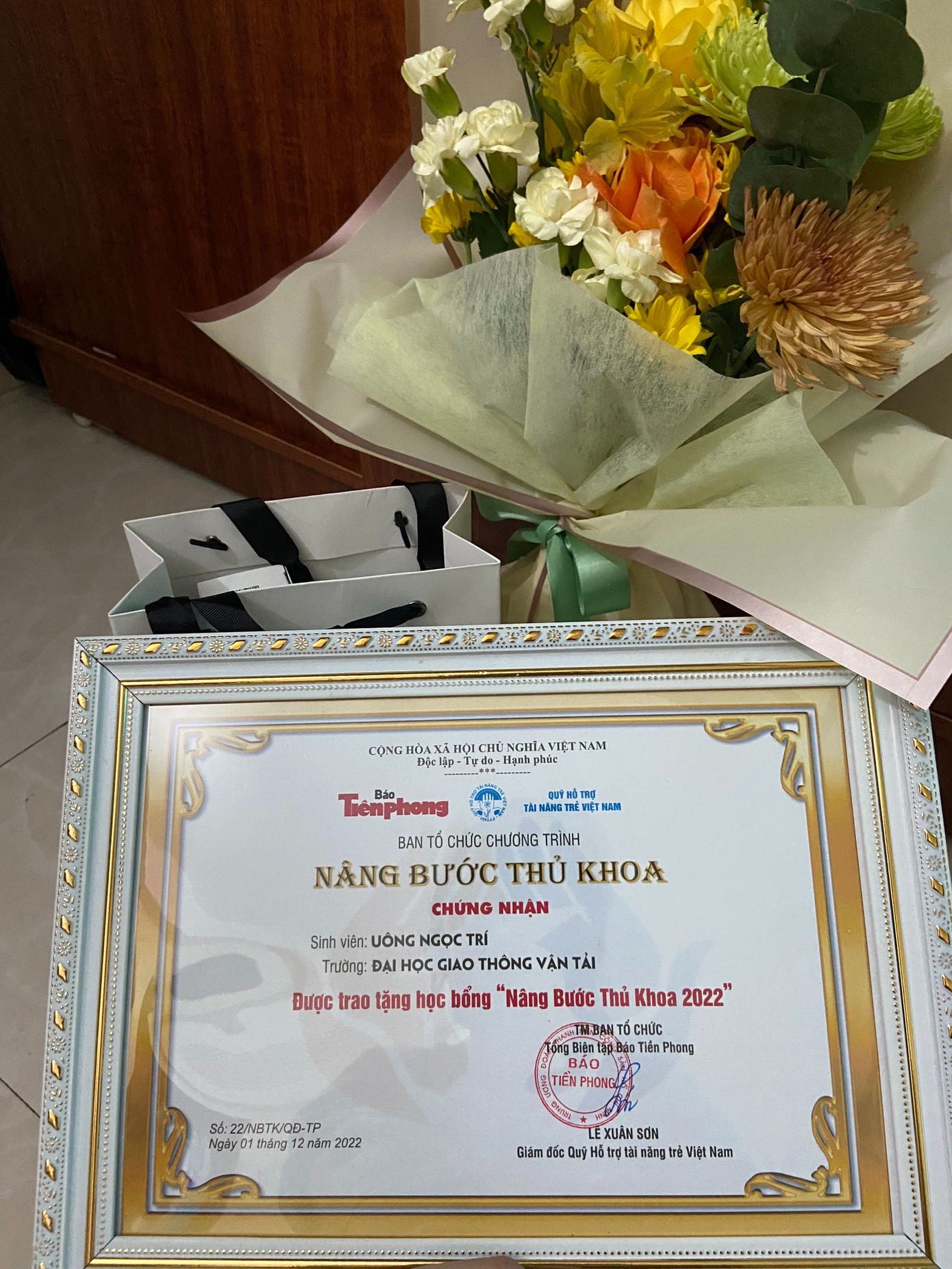 Nhằm tôn vinh, trao học bổng cho các tân sinh viên là thủ khoa có hoàn cảnh khó khăn của các trường đại học, học viện trong cả nước, Báo Tiền Phong và Quỹ Hỗ trợ tài năng trẻ Việt Nam đã tổ chức chương trình vinh danh và trao học bổng Nâng bước thủ khoa năm 2022. Trong số hơn 300 hồ sơ ứng viên năm nay, Uông Ngọc Trí là một trong 140 gương mặt tiêu biểu đủ điều kiện được nhận học bổng.