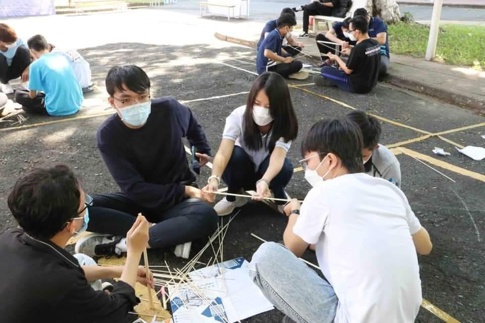 | Các bạn tân sinh viên hào hứng tham gia cuộc thi đua xe mô hình. |