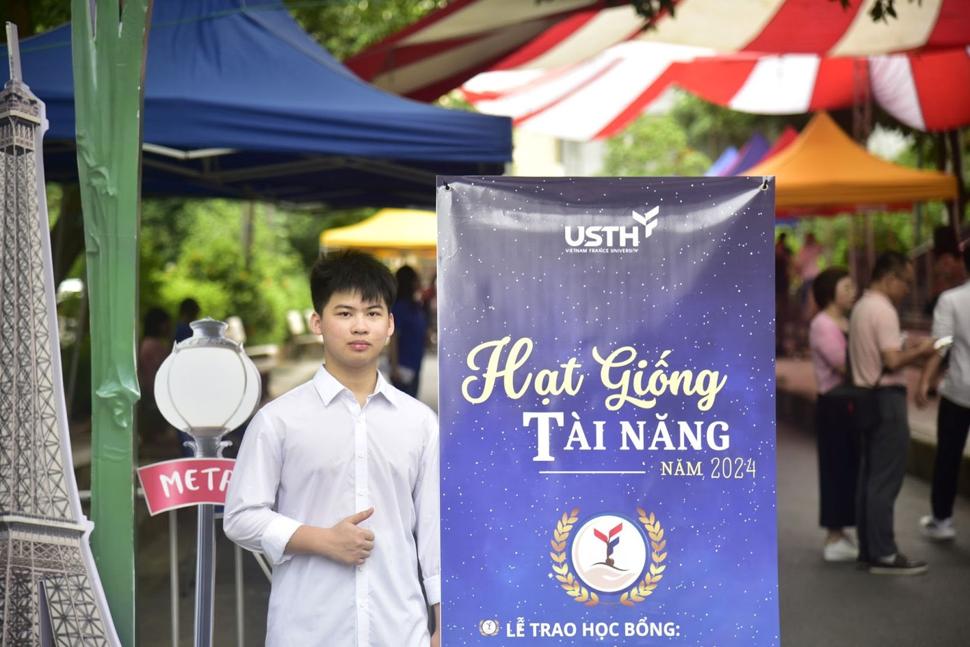 Tham dự Lễ trao học bổng “Hạt giống tài năng” kỳ tuyển sinh 2024, Giáp Vũ Sơn Hà chia sẻ: “ Mình cảm thấy rất bất ngờ khi nhận được học bổng toàn phần của USTH. Học bổng này có ý nghĩa quan trọng, vừa là nguồn động viên tinh thần, vừa là nguồn hỗ trợ tài chính để mình theo đuổi niềm đam mê Hóa học.”
