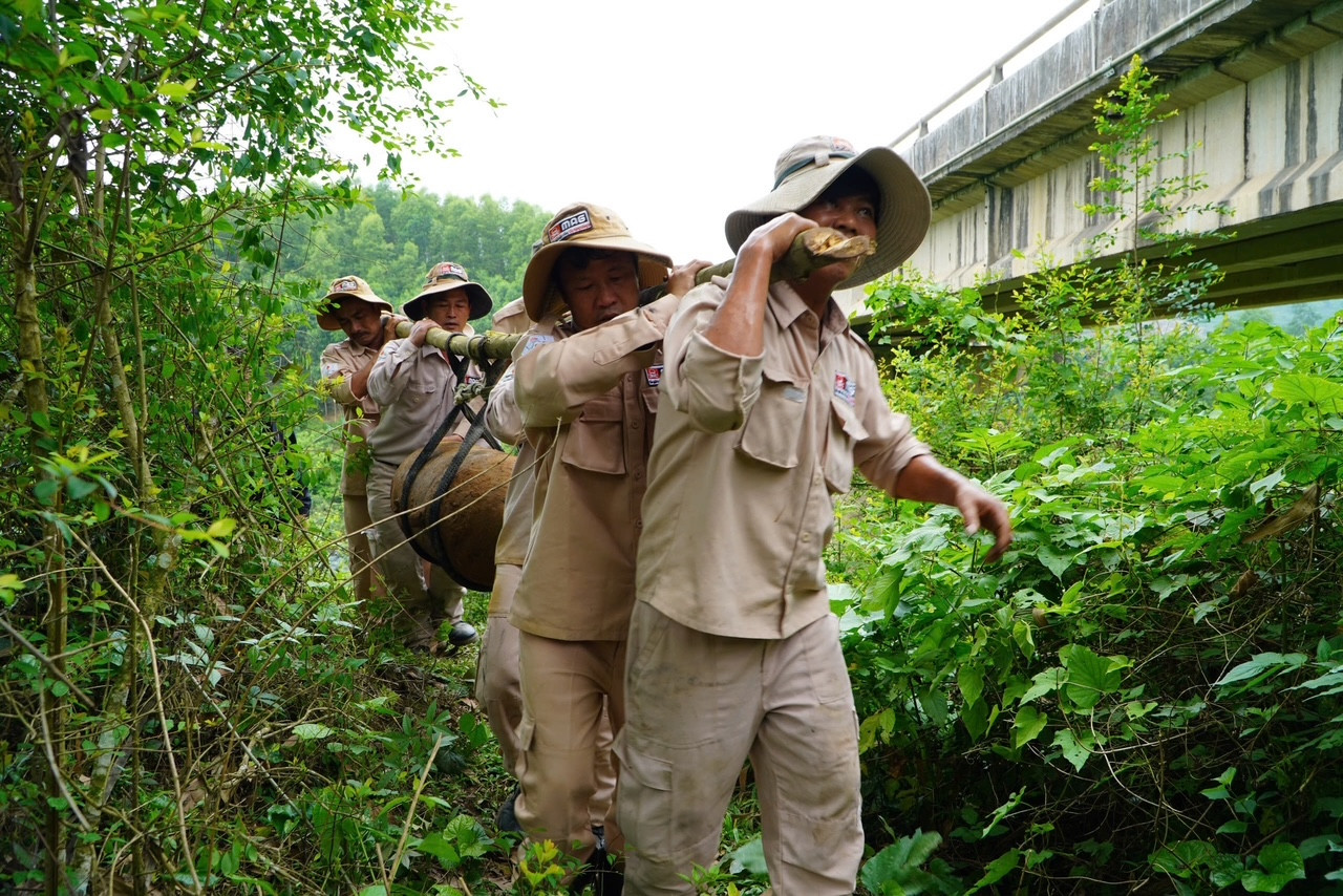 Nhận được tin báo, đội xử lý bom mìn lưu động của tổ chức MAG (Mines Advisory Group) đã nhanh chóng có mặt tại hiện trường. Qua kiểm tra, các chuyên gia xác định đây là quả bom M117, nặng khoảng 360kg, với bán kính sát thương lớn.