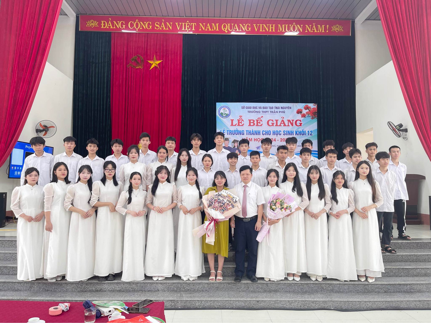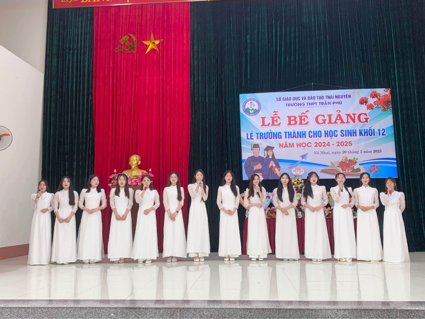 Trường THPT Trần Phú (Thái Nguyên) tổ chức Lễ bế giảng kết hợp lễ trưởng thành dành cho học sinh lớp 12. Buổi lễ vừa là dịp ghi nhận thành tích học tập, vừa là cơ hội để học sinh nói lời cảm ơn tới thầy cô và phụ huynh.