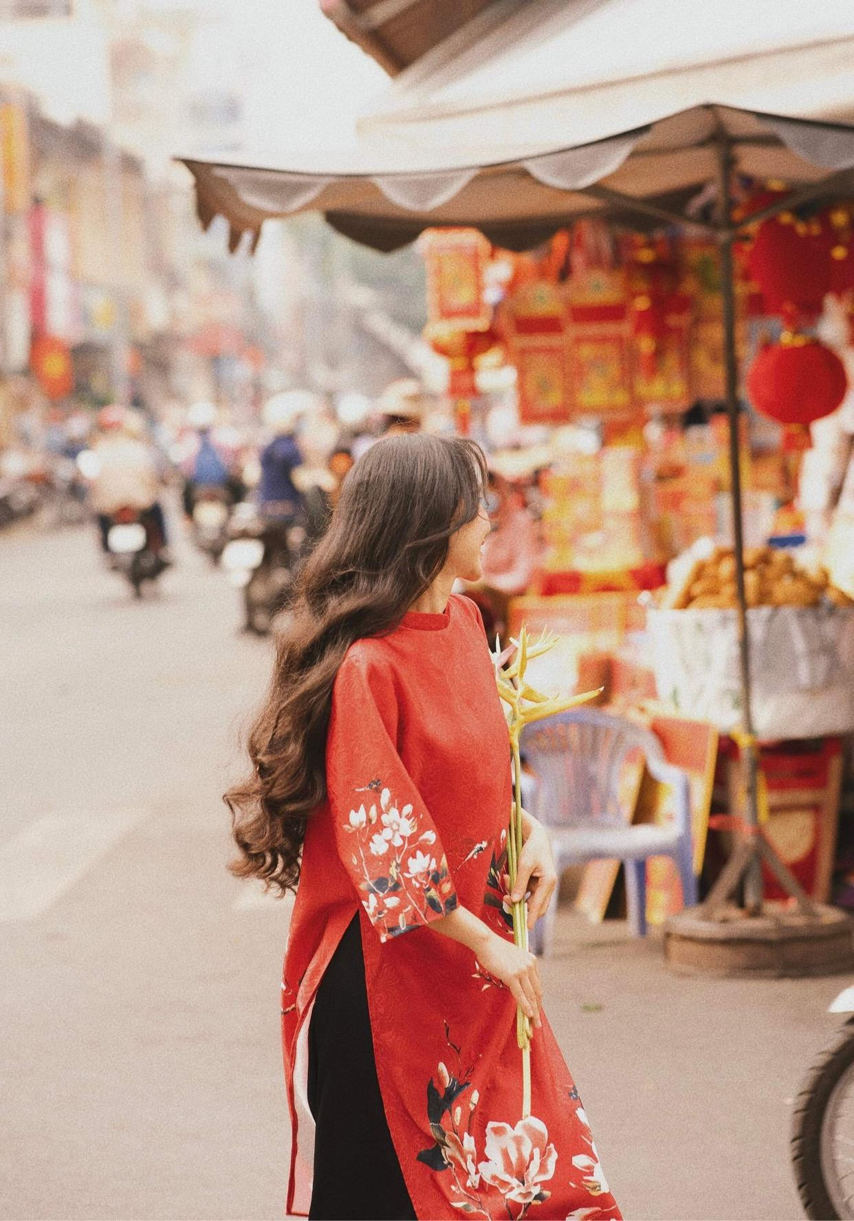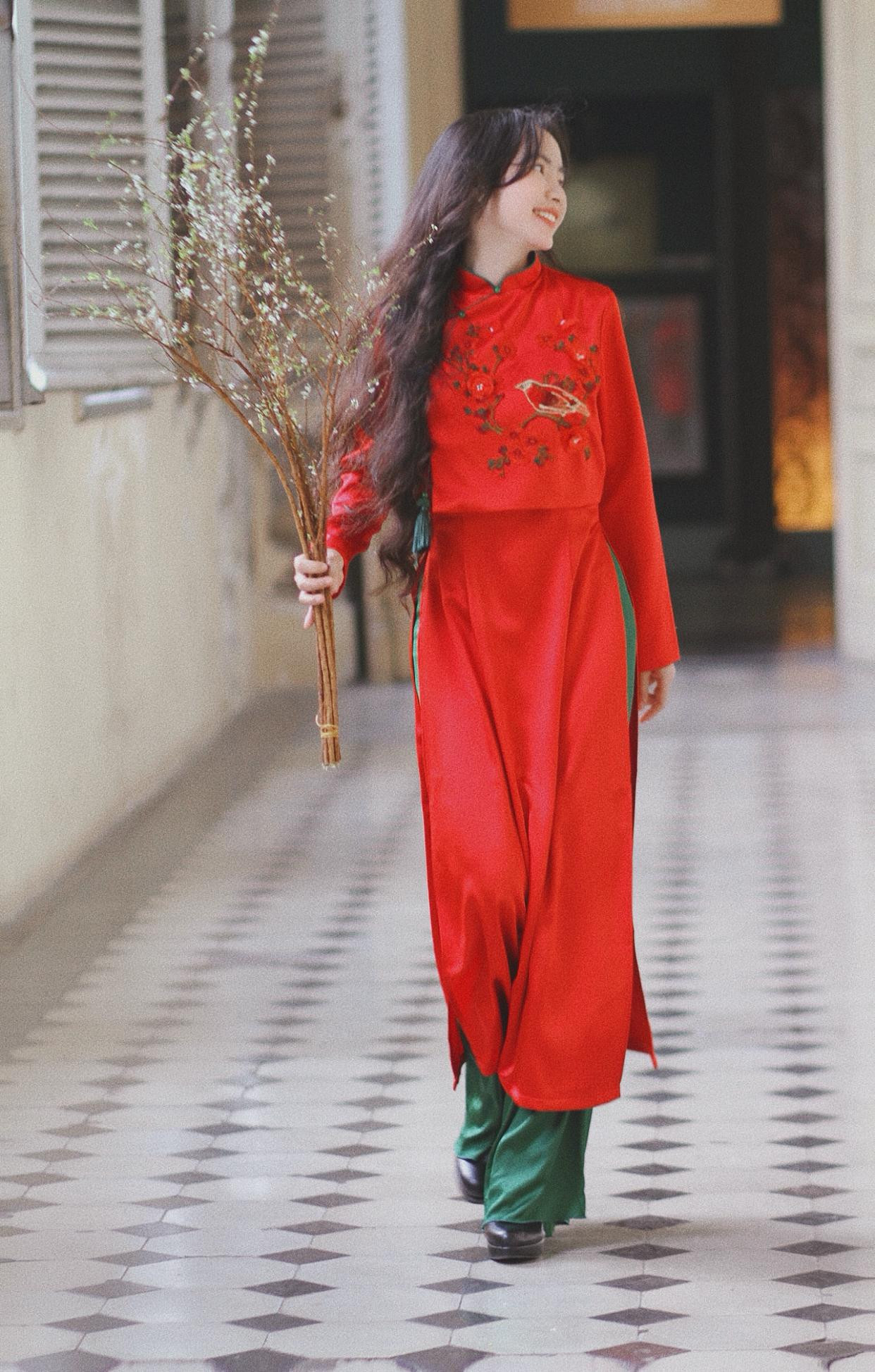 Những dịp Tết như thế này chính là quãng thời gian Minh Hương được sống chậm sau những ngày dài bận rộn. Là cơ hội được diện những chiếc áo dài rực rỡ đón Xuân và mang một tinh thần hào sảng đón năm mới.