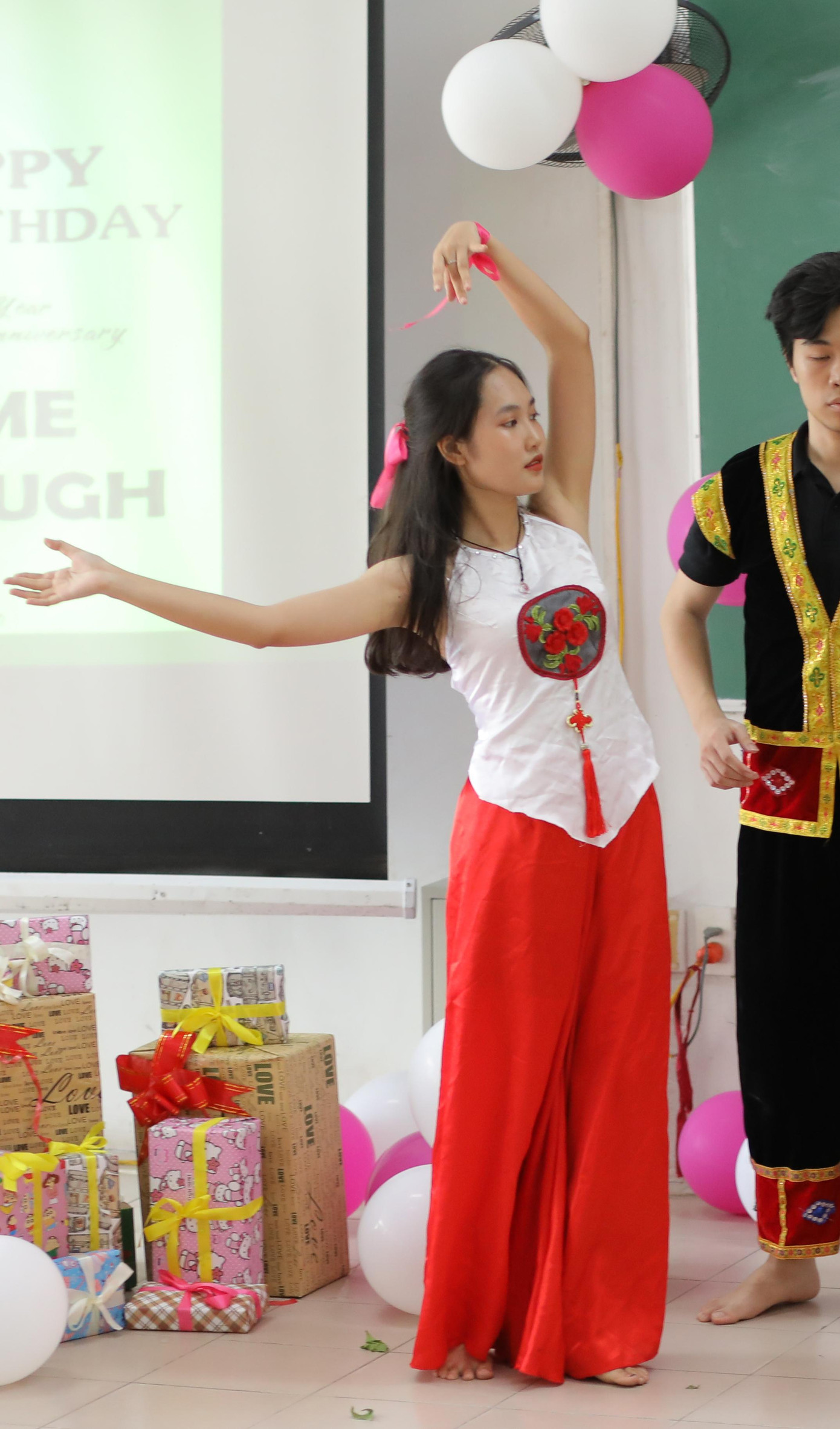 Mình được thỏa sức đam mê với ca múa, có cơ hội để thể hiện tài năng và chúng mình đạt được giải 3 trong cuộc thi Misteria – chào K65 của khoa. Sau đó nhờ gợi ý của các bạn mình cũng có hứng thú học mảng photoshop, design… vì những kĩ năng này rất có lợi trong thời đại 4.0 hiện nay. Đặc biệt là mình được trải nghiệm tham gia chương trình giúp đỡ những trẻ em khó khăn ở vùng núi, điều mà trước đây mình chưa từng làm