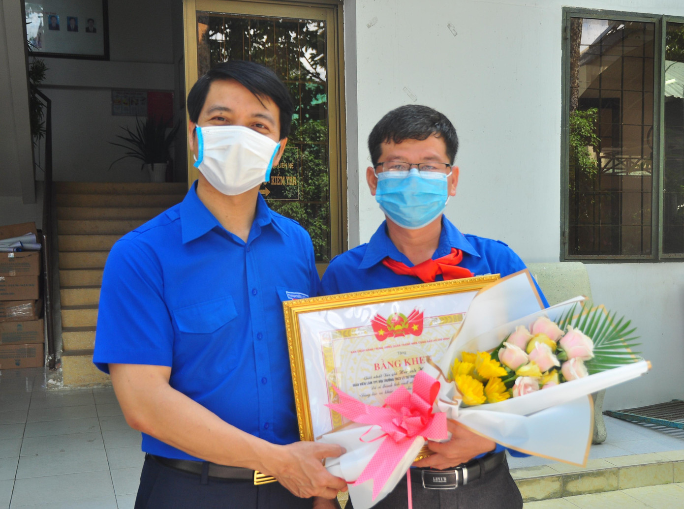 Sáng 19/5, tại Tỉnh đoàn Trà Vinh, anh Nguyễn Ngọc Lương, Bí thư Trung ương Đoàn, Chủ tịch Hội Đồng Đội Trung ương trao giải nhất cuộc thi "Sáng tác ca khúc dành cho thiếu nhi" cho thầy Huỳnh Huệ Minh, giáo viên Tổng phụ trách Đội trường THCS Lý Tự Trọng, TP Trà Vinh.