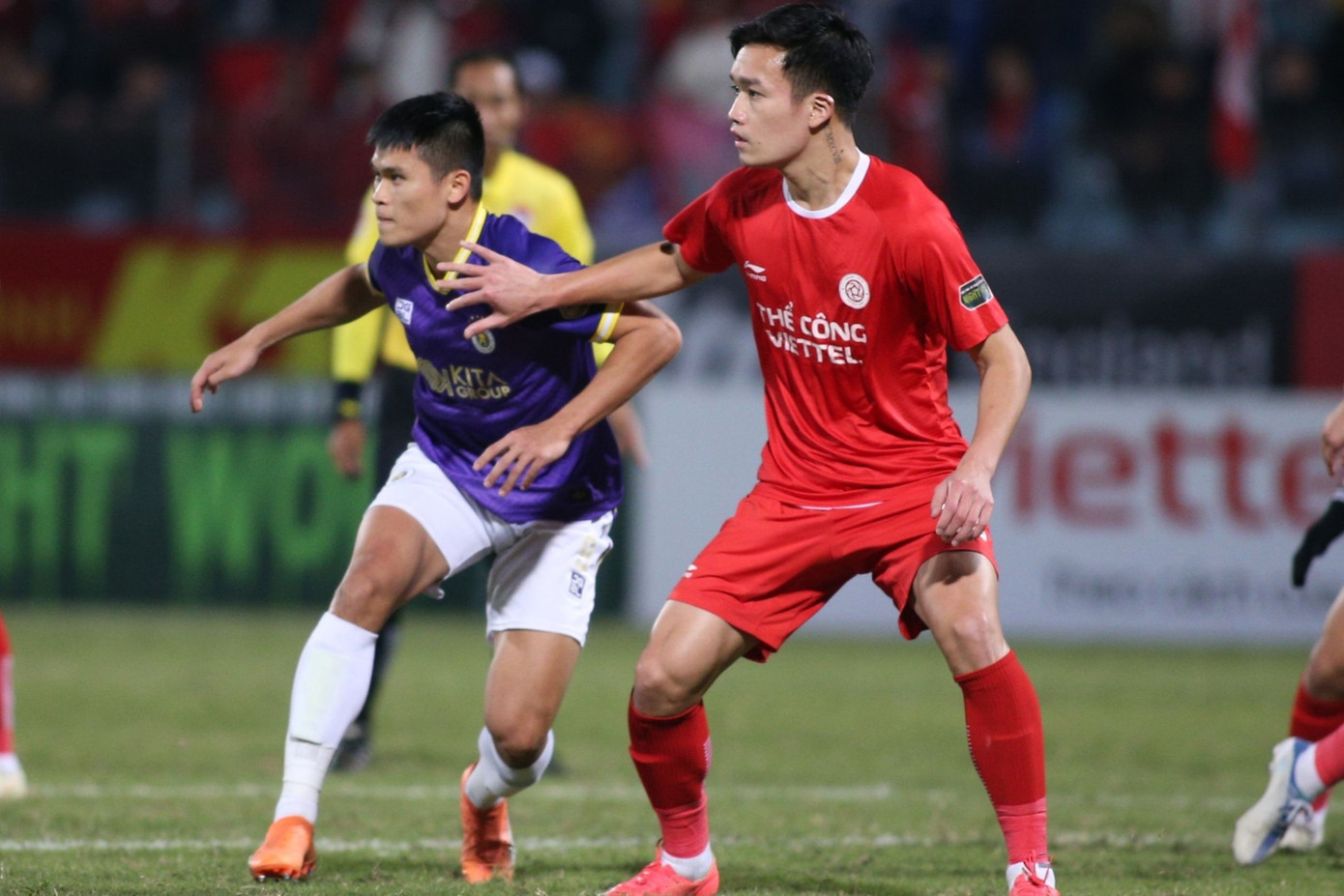 Phút 1: Trận derby thủ đô giữa Thể Công Viettel và Hà Nội FC chính thức bắt đầu sau tiếng còi của trọng tài Nguyễn Mạnh Hải.