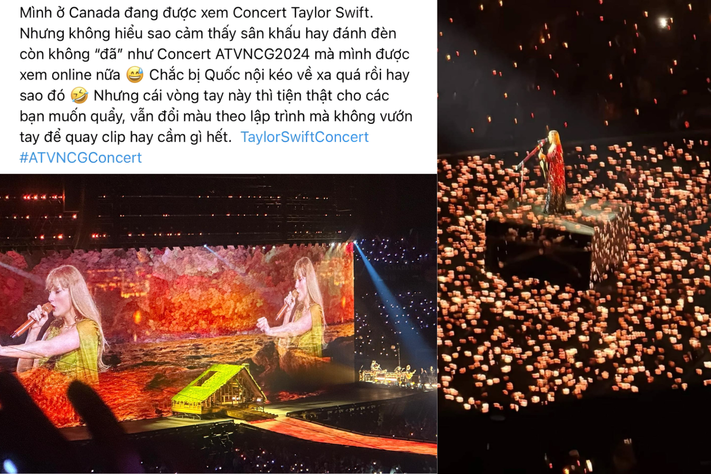 Trên mạng xã hội, một tài khoản đã chia sẻ dòng trạng thái: “Mình ở Canada đang được xem Concert Taylor Swift. Nhưng không hiểu sao cảm thấy sân khấu hay đánh đèn còn không "đã" như Concert ATVNCG2024 mà mình được xem online nữa”. Ý kiến này thu hút sự chú ý của cộng đồng mạng, đặc biệt từ fan của chương trình Anh Trai Vượt Ngàn Chông Gai (ATVNCG) và những người hâm mộ Taylor Swift.